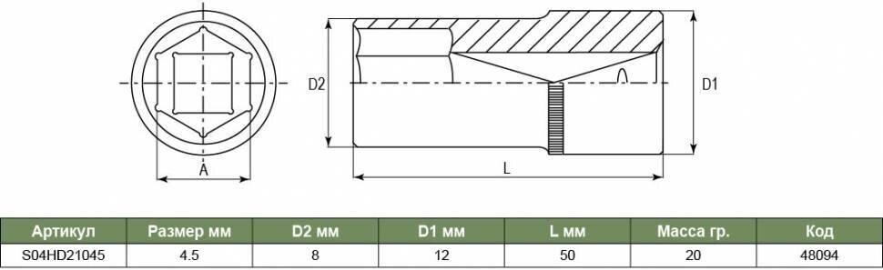 | Наименование модели | торцевая головка S04HD21045 |