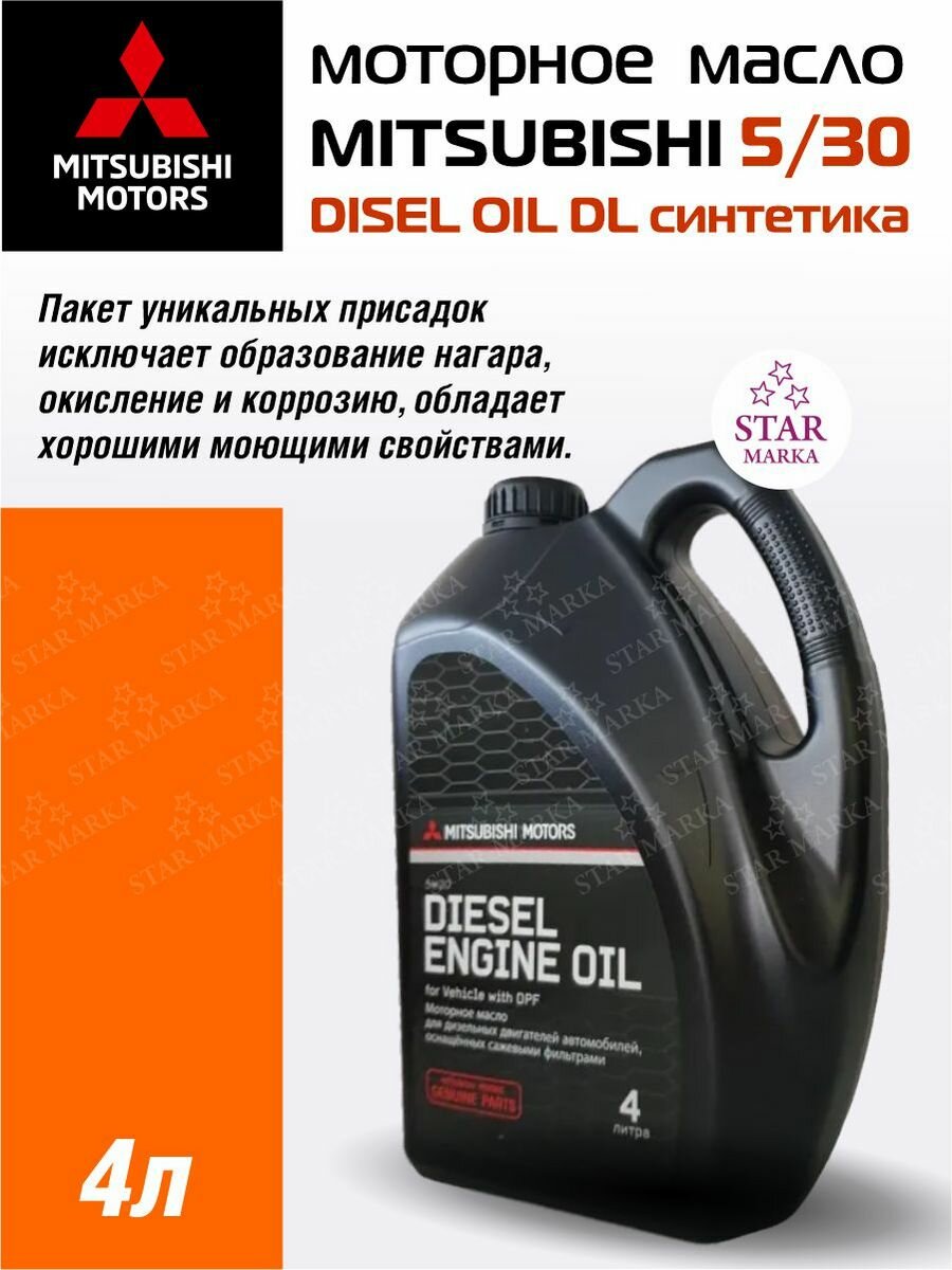 Моторное масло DIESEL ENGINE OIL FOR VEHICLE WITH DPF 5W-30 синтетическое 4л Mitsubishi (MZ320759)