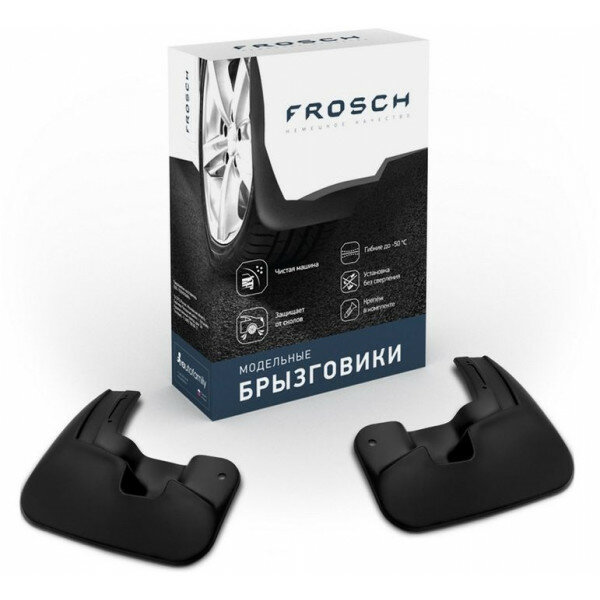 Брызговики Frosch – это не только способ защитить свой автомобиль от летящих из-под колёс грязи, песка и камней, сделать поездку безопаснее для всех участников движения, но и стильный аксессуар, дополняющий силуэт автомобиля. Просчитанная геометрия, а также наличие оригинального крепежа и подробной инструкции сделают процесс установки простым и быстрым. А европейские материалы и технологии позволяют брызговикам сохранять гибкость даже на морозе. Преимущества Frosch: • наличие оригинального крепежа и инструкции по установке; • отверстия в местах крепления ускоряют и упрощают установку; • материал сохраняет гибкость даже на 50-градусном морозе; • надёжная защита кузова от пескоструйного эффекта; • геометрия, разработанная по результатам 3D-сканирования колёсной арки.