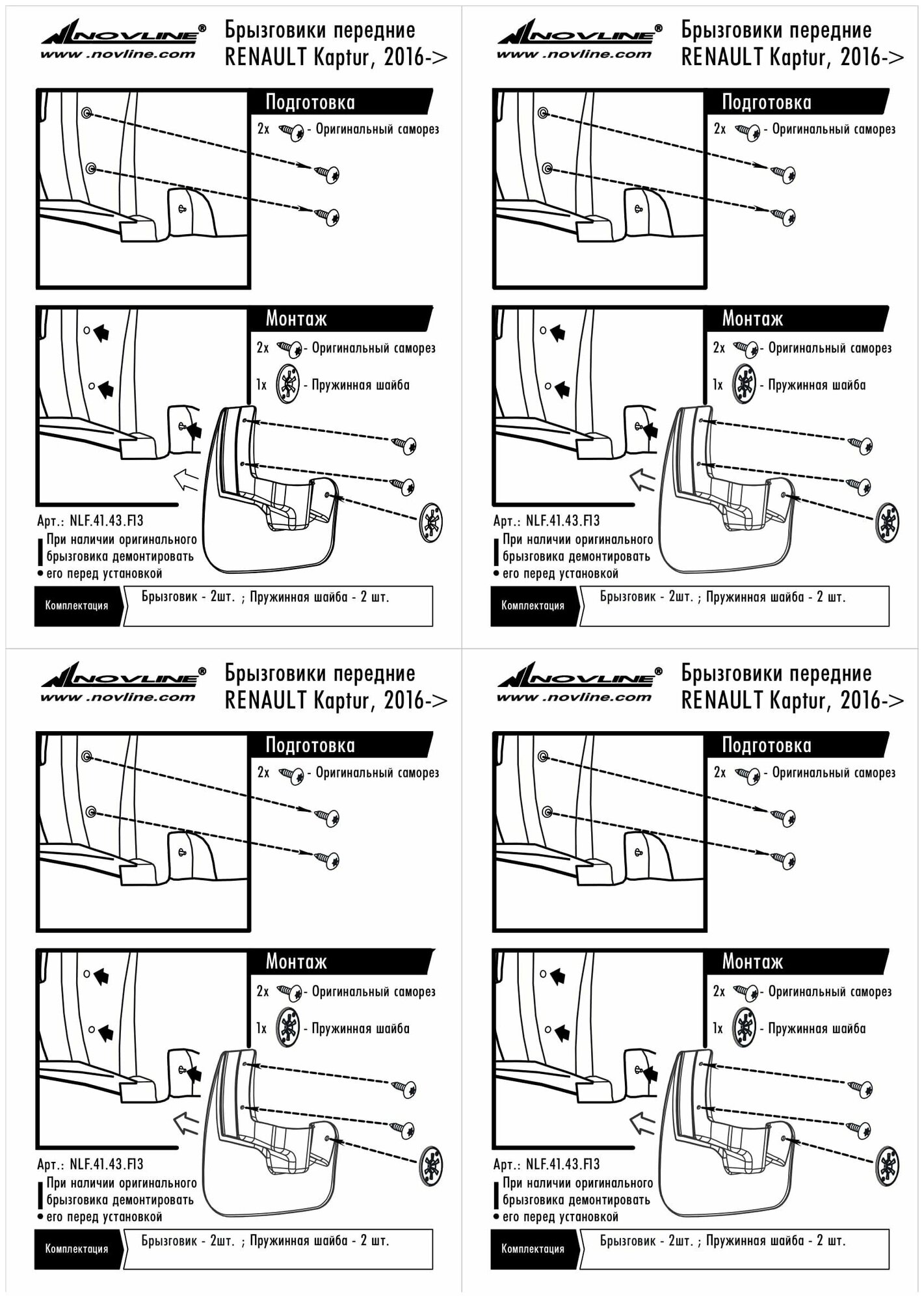 Сервис сравнения цен СкидкаГИД предлагает сравнить цены на товар «Брызговики передние RENAULT Kaptur 2016 полиуретановые в пакете 2шт Frosch (NLF.41.43.F13)»