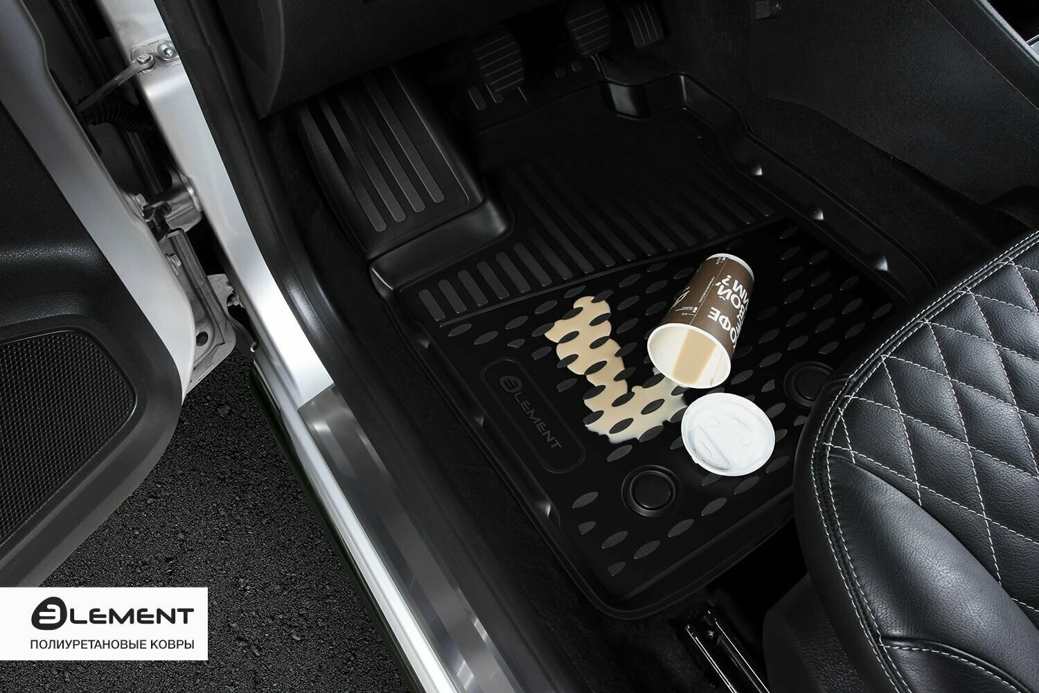 В поисках совершенной защиты пола автомобиля талантливые дизайнеры и инженеры создали уникальные ковры под брендом ELEMENT. Функциональность: идеально повторяют геометрию пола автомобиля; высокие борта обеспечивают надежную защиту интерьера от грязи и влаги; запатентованный 3D-язычок закрывает площадку отдыха ноги водителя, включая боковую поверхность; благодаря эластичности материала, ковры легко извлечь из автомобиля, не допуская попадания влаги и мелкого мусора на напольное покрытие салона. Безопасность: оригинальный крепеж надежно фиксирует водительский ковер в салоне, препятствуя попаданию ковра под педали управления. Ковры ELEMENT изготовлены с применением экологически чистых материалов, которые не оказывают негативного воздействия на человека. Дизайн: ковры имеют оригинальный объемный рисунок, который подчеркивает их индивидуальность, являясь продолжением дизайна автомобиля. Представлены в трех цветах: черном, сером и бежевом. Материал: полиуретан.