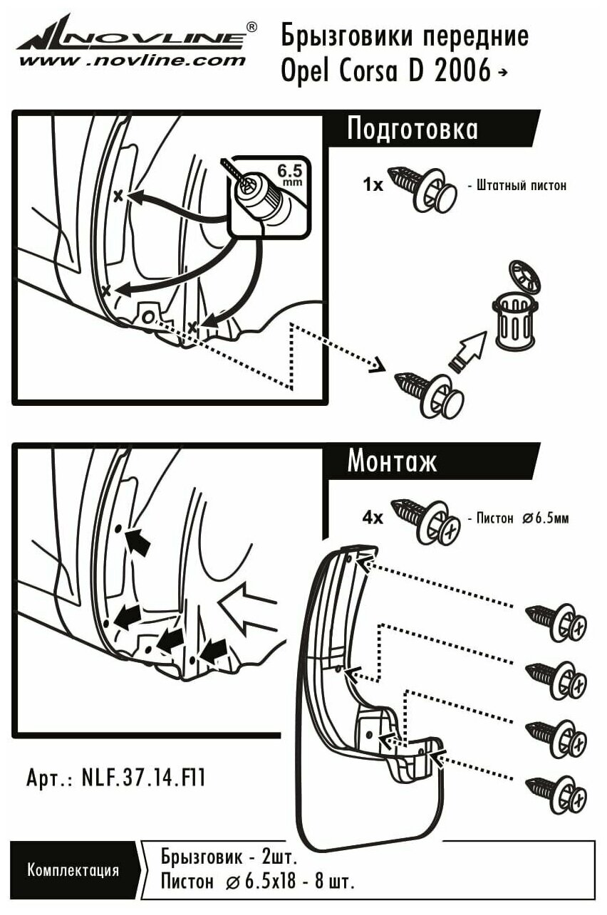 Брызговики передние OPEL Corsa D 2006 (хэтчбек) полиуретановые в пакете 2шт Frosch (NLF.37.14.F11)