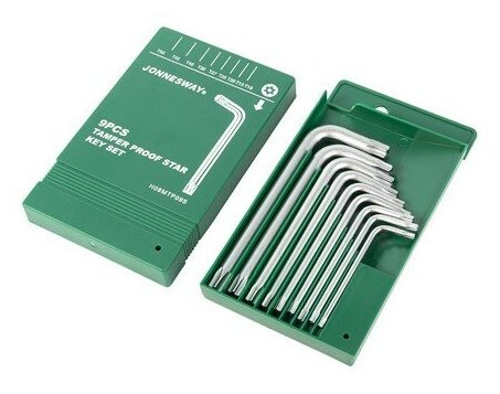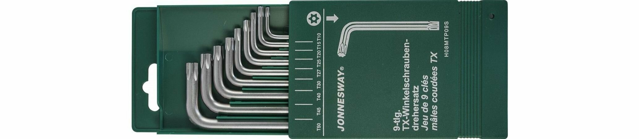 Комплект угловых ключей Jonnesway H08MTP09S TORX с центрированным штифтом Т10-Т50 9 предметов