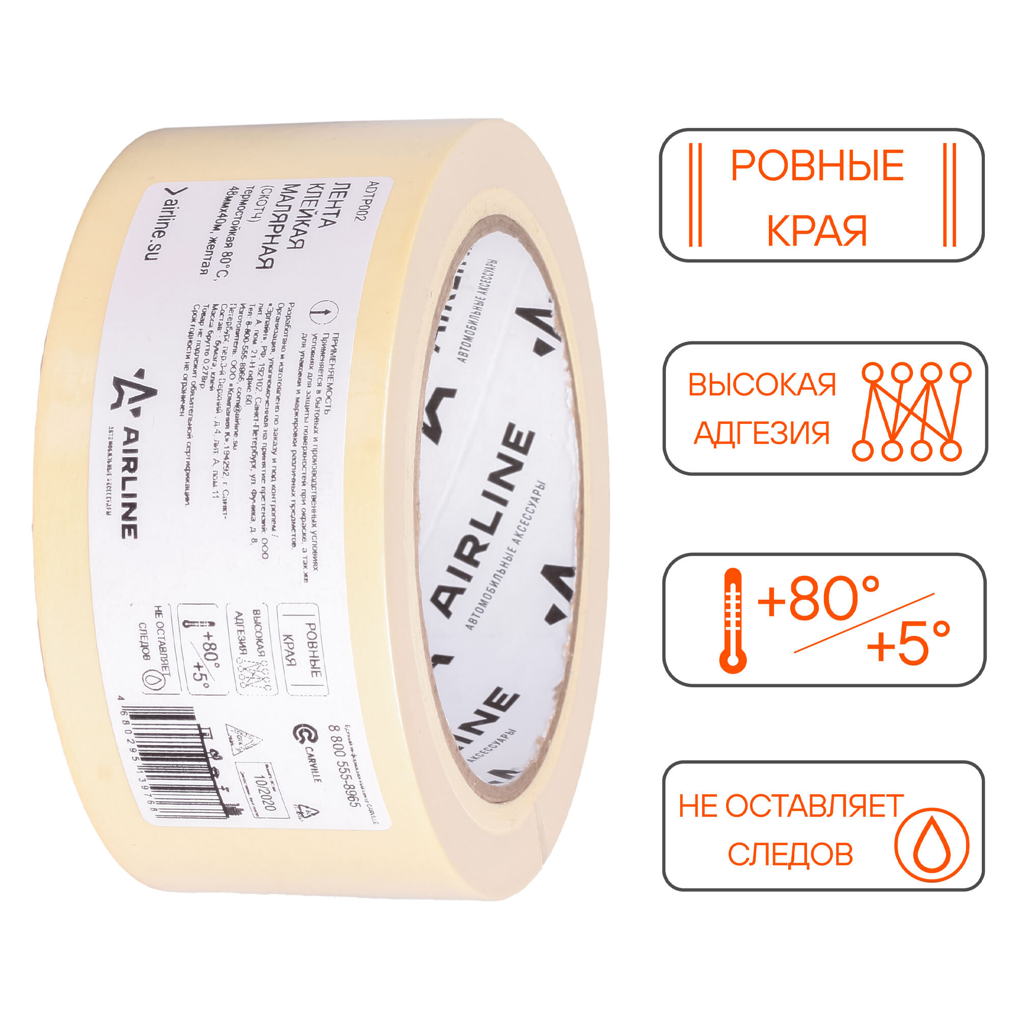 Лента клейкая малярная (скотч) термостойкая 80 C 48мм х 40м желтая (AIRLINE) (ADTP002) (размер: 48 мм*40 м)
