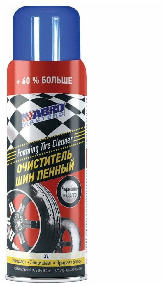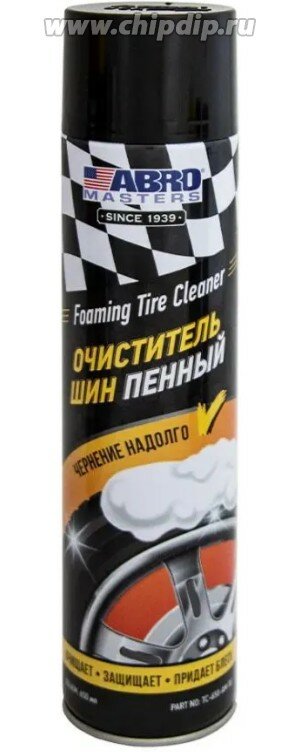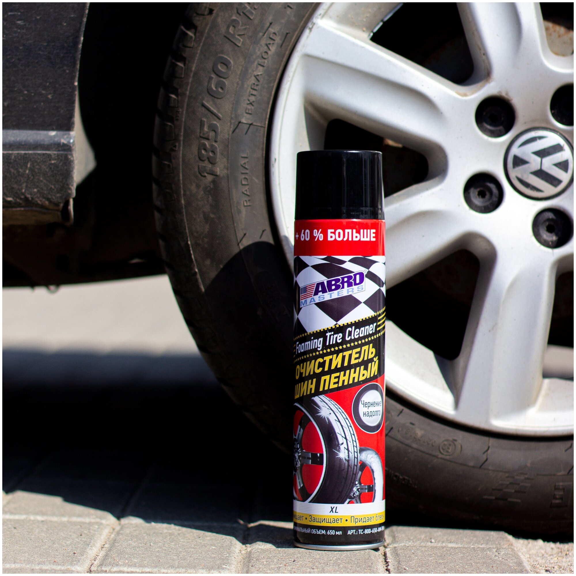 УКАЗАНИЯ: Тщательно встряхните баллон перед использованием. Пенный Очиститель Шин АБРО может наноситься как на сухую, так и на мокрую поверхность шин. Держите баллон на расстоянии 15 см от боковой поверхности шины и распыляйте круговыми движениями. НЕ НУЖНО удалять салфеткой нанесенную пену. Через несколько минут она высохнет. Для достижения лучших результатов заранее очистите шину от комков грязи. Не распылять на тормозные диски и барабаны, коврики для пола или сиденья. Старайтесь не попадать на края крыльев и окрашенные металлические поверхности. Удалите салфеткой излишки пены.