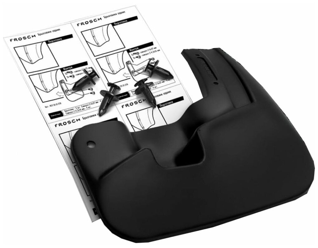 Брызговики Frosch – это не только способ защитить свой автомобиль от летящих из-под колёс грязи, песка и камней, сделать поездку безопаснее для всех участников движения, но и стильный аксессуар, дополняющий силуэт автомобиля. Просчитанная геометрия, а также наличие оригинального крепежа и подробной инструкции сделают процесс установки простым и быстрым. А европейские материалы и технологии позволяют брызговикам сохранять гибкость даже на морозе. Преимущества Frosch: • наличие оригинального крепежа и инструкции по установке; • отверстия в местах крепления ускоряют и упрощают установку; • материал сохраняет гибкость даже на 50-градусном морозе; • надёжная защита кузова от пескоструйного эффекта; • геометрия, разработанная по результатам 3D-сканирования колёсной арки.
