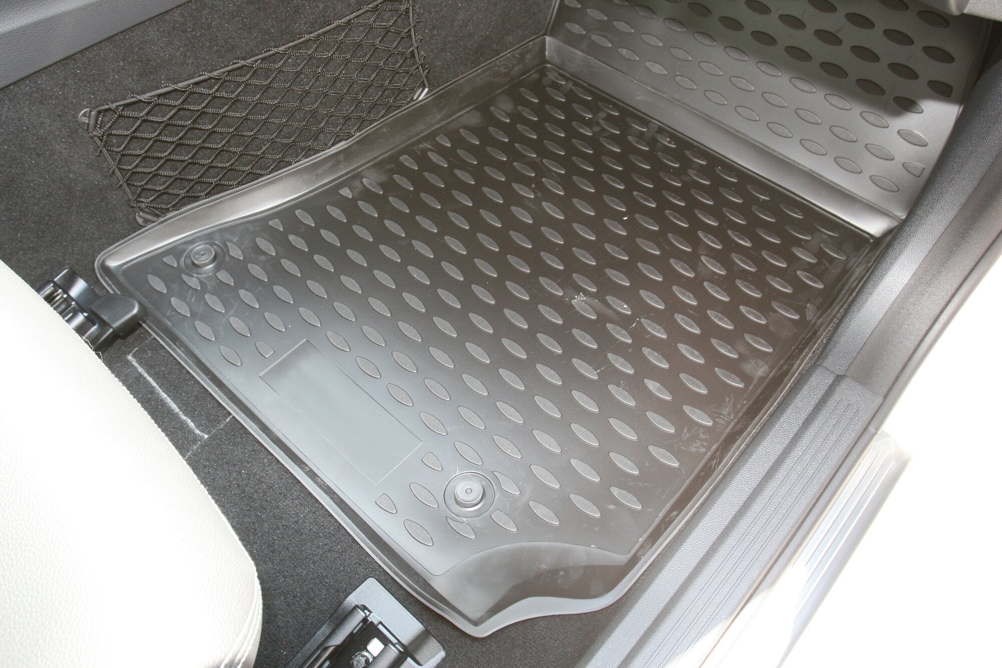 Коврики в салон из полиуретана обретают всё большую популярность, вытесняя резиновые изделия, так как этот материал имеет ряд преимуществ: меньший вес при одинаковой площади ковра, высокую эластичность, меньший коэффициент износа при схожих условиях эксплуатации – при этом у полимера полностью отсутствует запах, этот материал не выделяет едких испарений. Для салона каждой модели авто коврики изготавливаются по индивидуальным кроям, что обеспечивает максимальное прилегание изделия в нише пола без зазоров и складок. Для защиты напольного покрытия в геометрии ковра предусмотрены высокие бортики и рельефный рисунок – всё это способствует удержанию как песка, так и влаги. Коврик водителя дополнительно оборудован выступом – язычком, закрывающим подножку рядом с педалью сцепления, а также рельефом антискольжения и фиксаторами. Полиуретановые коврики просты в эксплуатации и чистке. Изделия выпускаются в сером, бежевом и чёрном цвете – это позволит выбрать подходящий для любого интерьера автомобиля. Продукция прошла сертификацию, что подтверждает её качество.