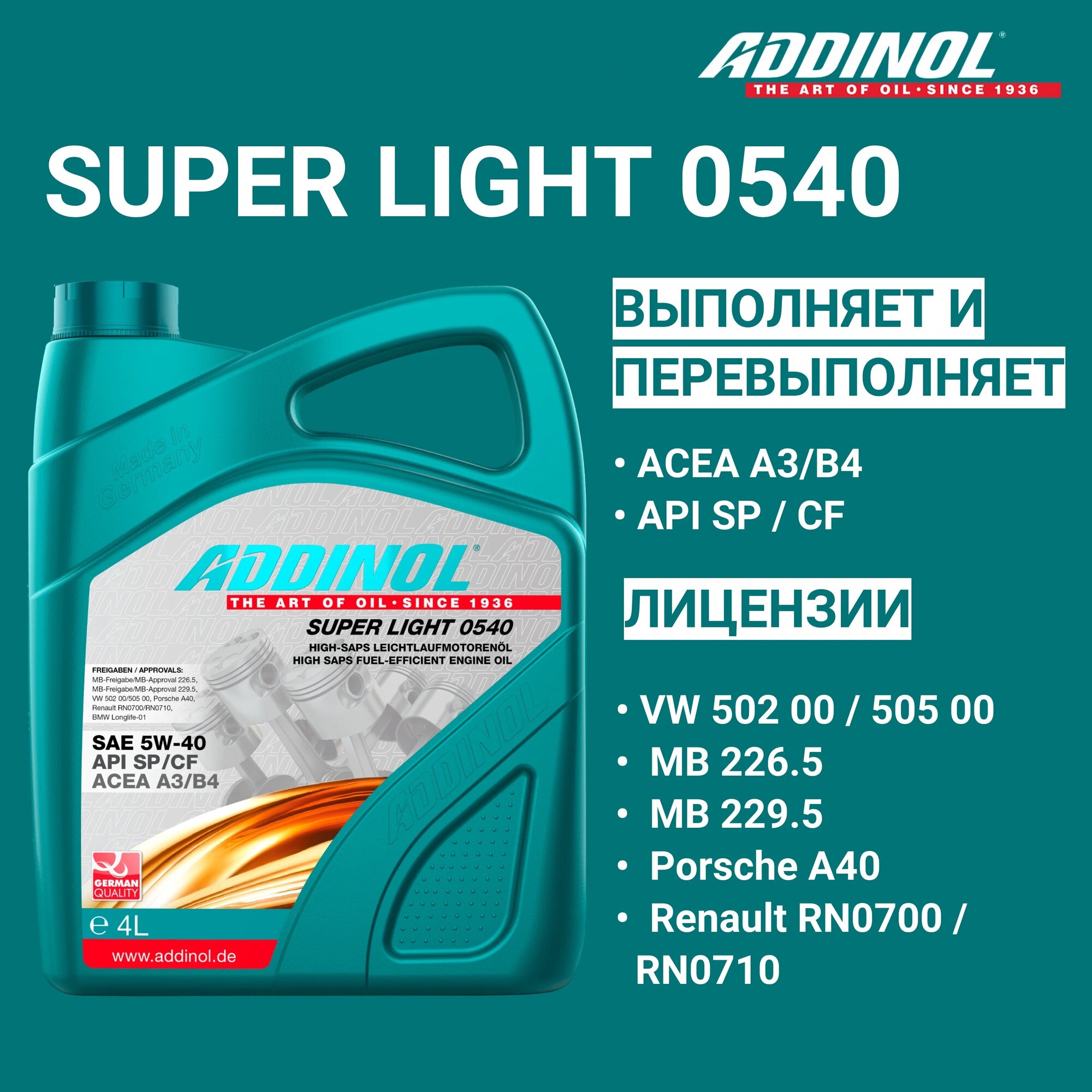 Моторное масло Addinol Super Light Addinol 5W40 ситетическое 1л Super Light 540 5W-40