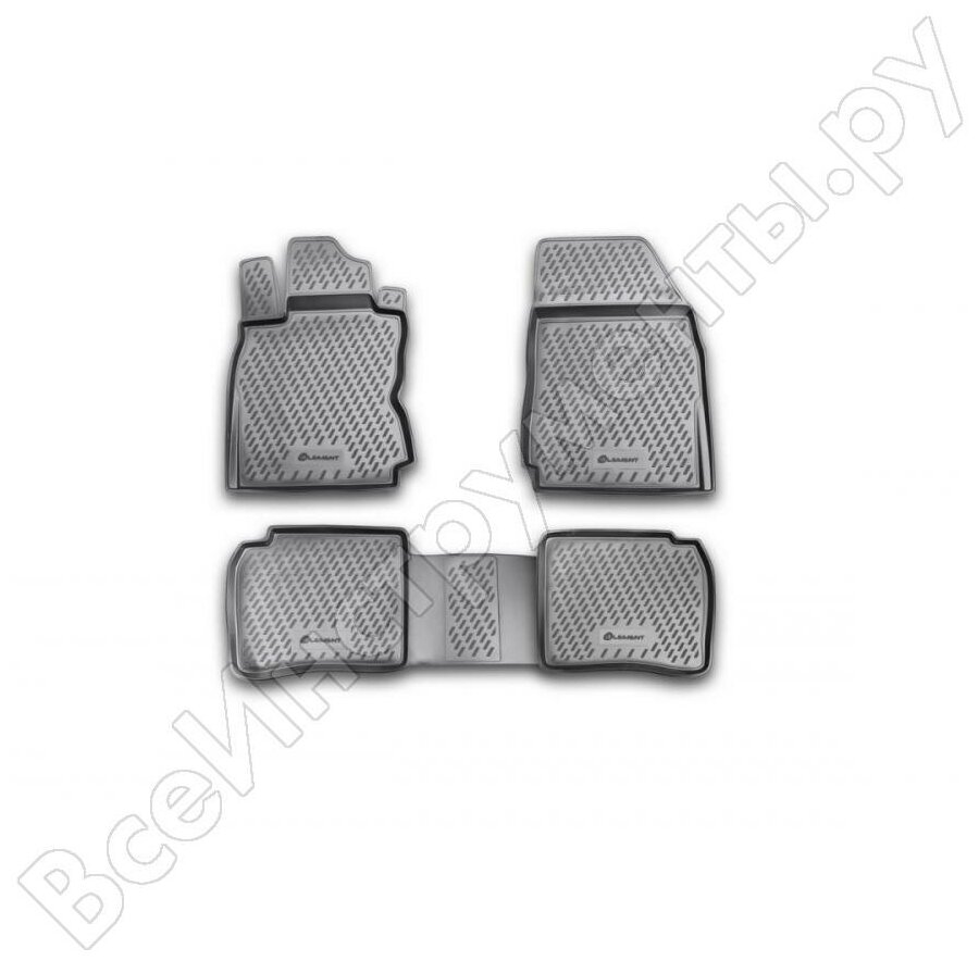 В поисках совершенной защиты пола автомобиля талантливые дизайнеры и инженеры создали уникальные ковры под брендом ELEMENT. Функциональность: идеально повторяют геометрию пола автомобиля; высокие борта обеспечивают надежную защиту интерьера от грязи и влаги; запатентованный 3D-язычок закрывает площадку отдыха ноги водителя, включая боковую поверхность; благодаря эластичности материала, ковры легко извлечь из автомобиля, не допуская попадания влаги и мелкого мусора на напольное покрытие салона. Безопасность: оригинальный крепеж надежно фиксирует водительский ковер в салоне, препятствуя попаданию ковра под педали управления. Ковры ELEMENT изготовлены с применением экологически чистых материалов, которые не оказывают негативного воздействия на человека. Дизайн: ковры имеют оригинальный объемный рисунок, который подчеркивает их индивидуальность, являясь продолжением дизайна автомобиля. Представлены в трех цветах: черном, сером и бежевом. Материал: полиуретан.