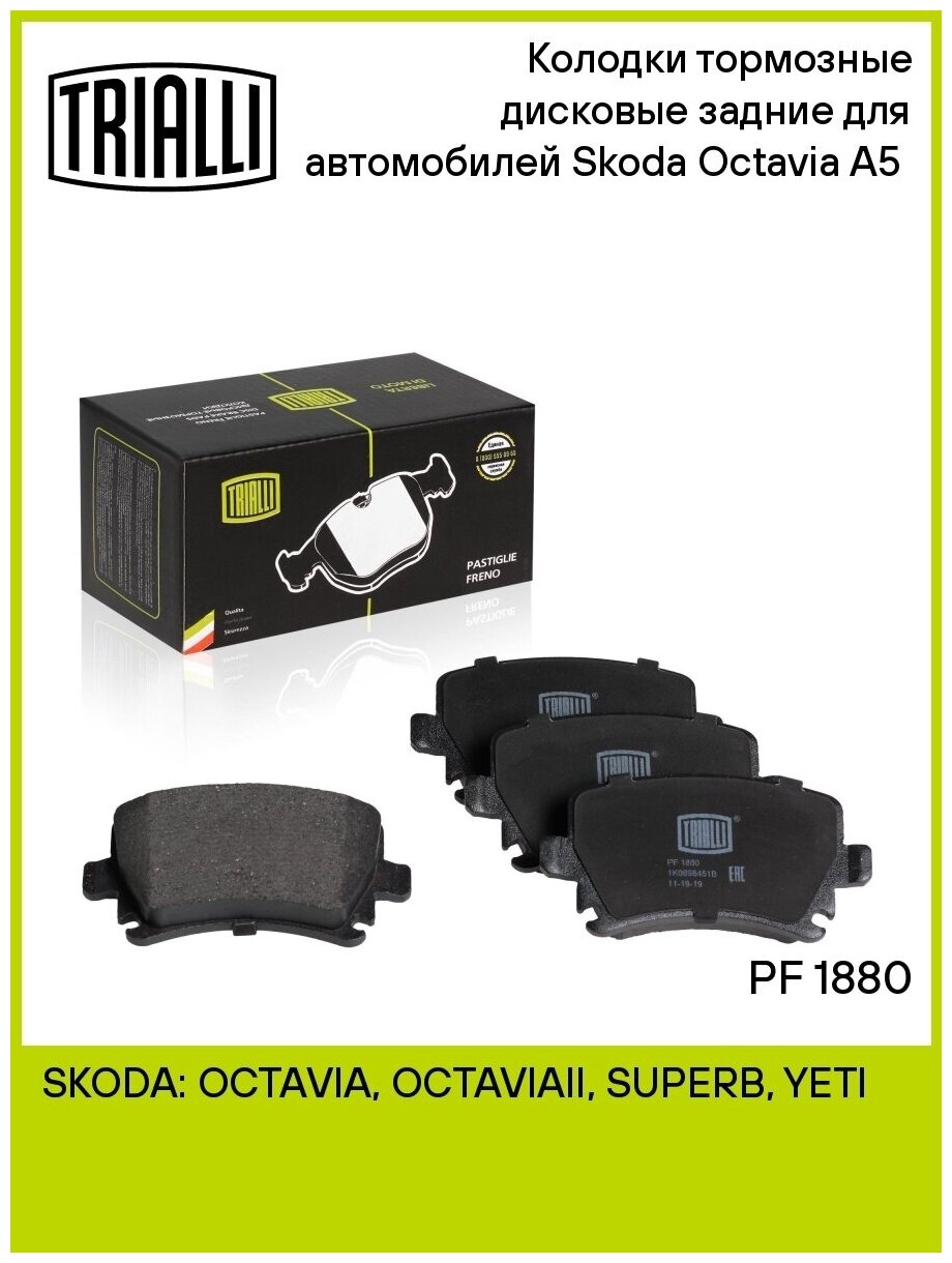 Колодка тормозная SKODA Octavia A5 (04-) диск. задняя (TRIALLI) (PF 1880)