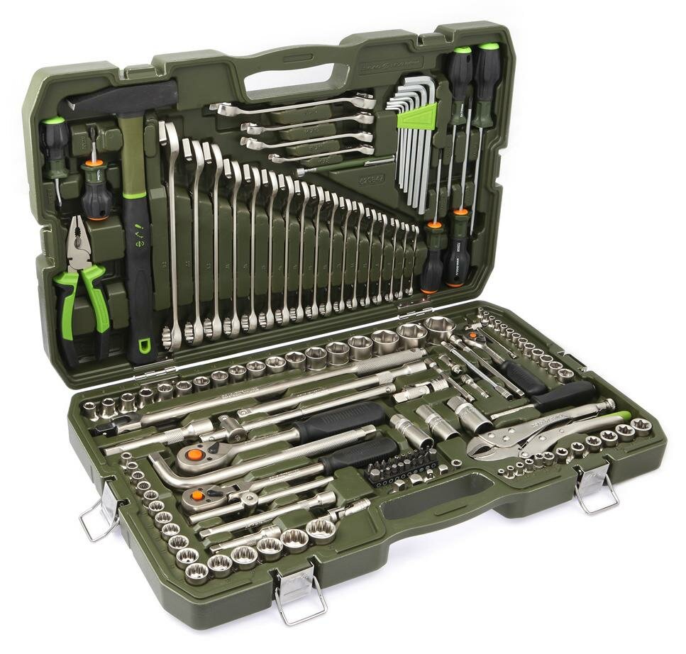 | Комплектация | ключи гаечные; биты; торцевые головки; удлинитель для головок; шарнир карданный для головок |