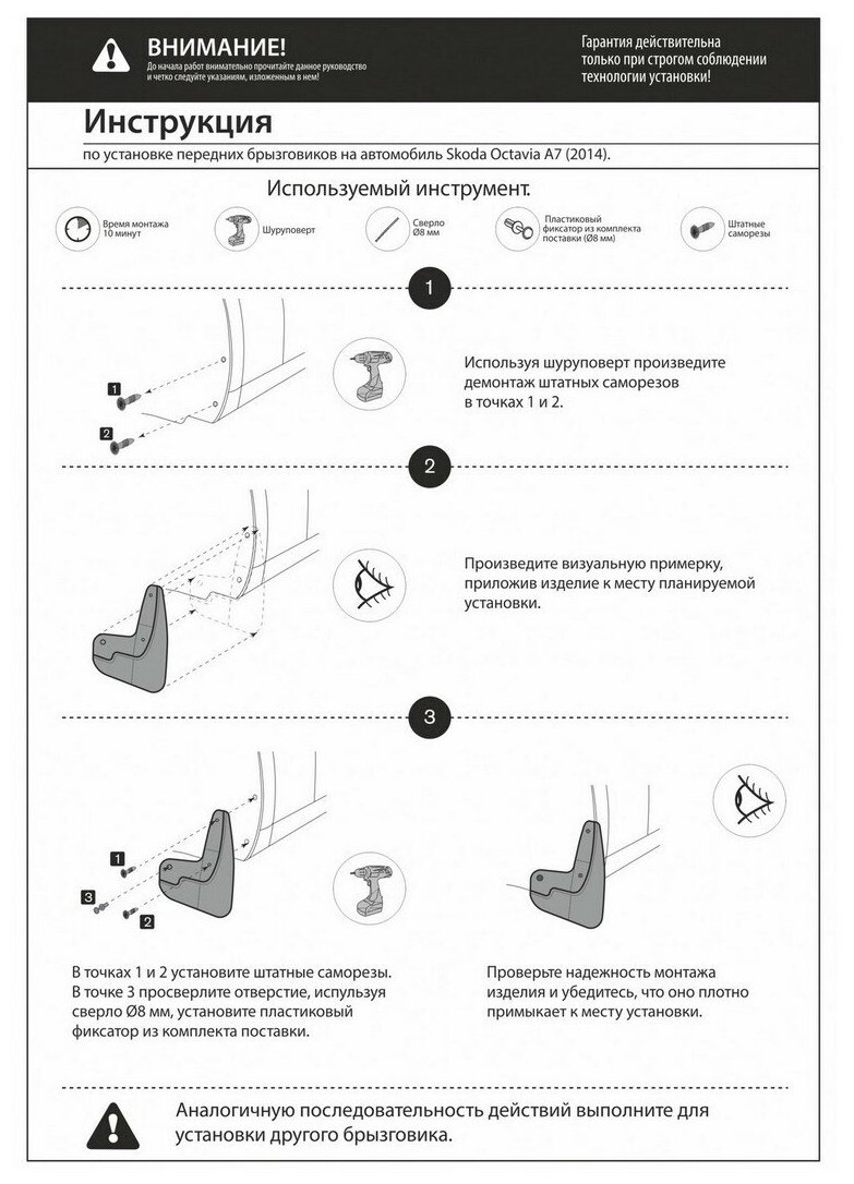 Модель: Брызговики Rival для Skoda Octavia A7 2014-2017 2017- передние