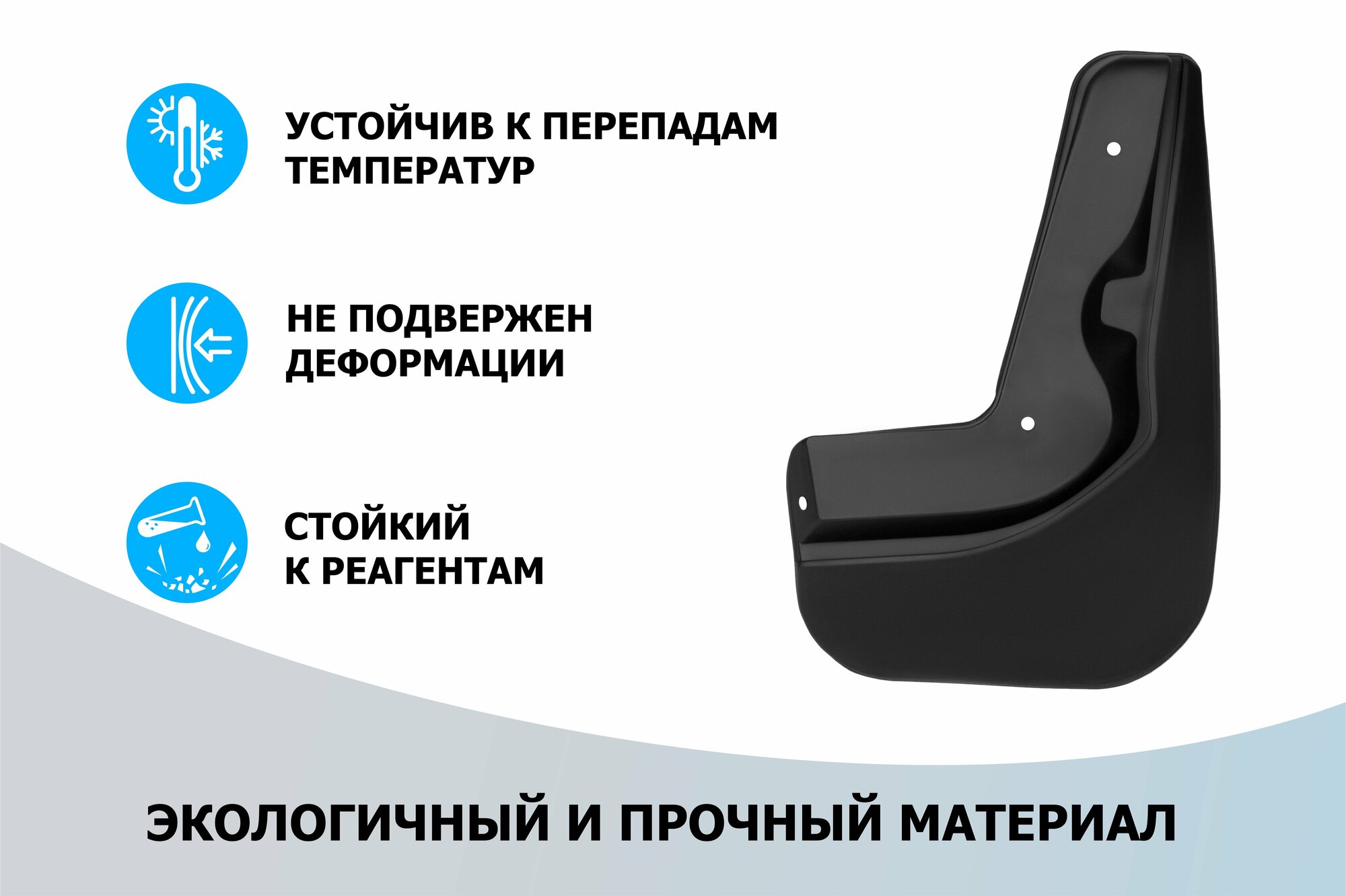 Брызговики Rival защищают покрытие автомобиля от грязи, мусора и посторонних предметов, летящих из-под колес вашего автомобиля во время движения.Особенности брызговиков Rival:- Изготовлены из высококачественного, нетоксичного и экологичного материала, что делает их стойкими к перепадам температур, а также придает эластичность.- Отлично вписываются во внешний облик автомобиля, выглядят как естественное продолжение колесной арки.- Надежно фиксируются в штатные технологические отверстия.