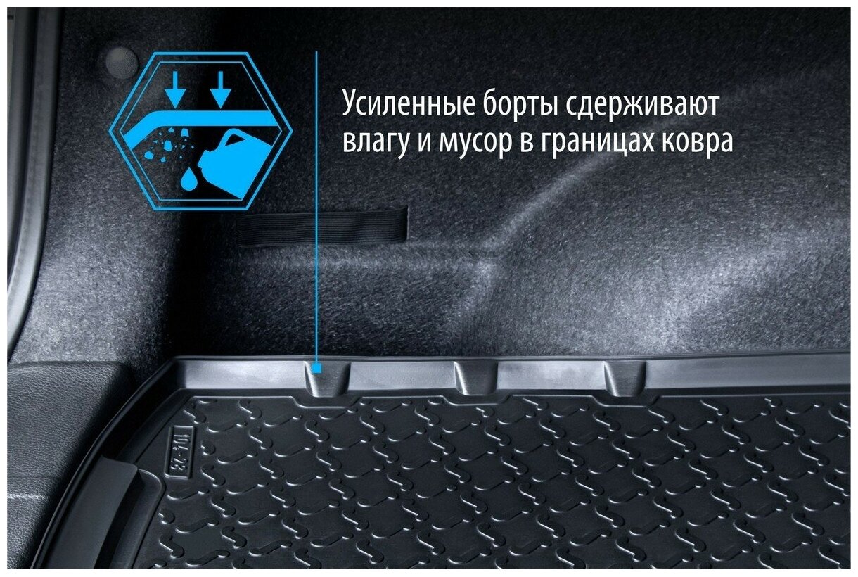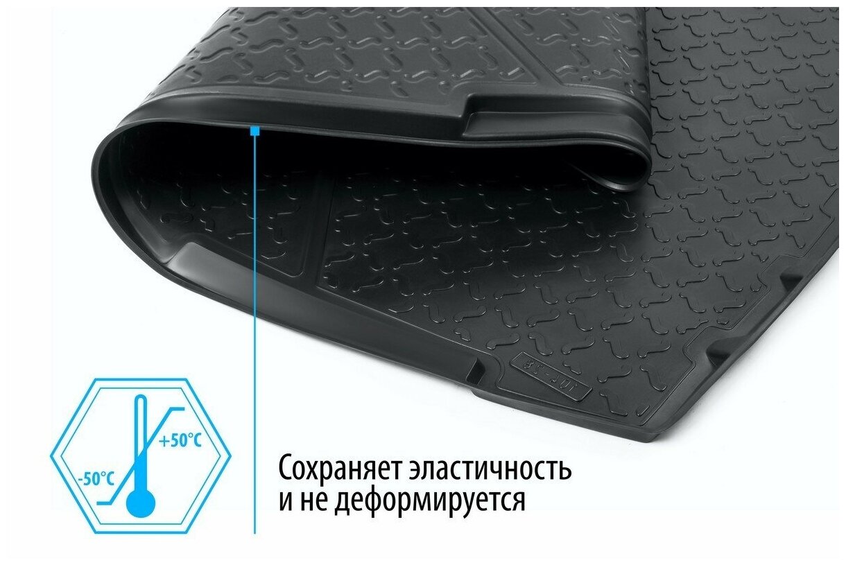 Коврик багажника позволяет надежно защитить и сохранить от грязи багажный отсек вашего автомобиля на протяжении всего срока эксплуатации, полностью повторяют геометрию багажника.Основными преимуществами продукта являются:- Борт, высотой 3 см, имеет специальную конструкцию, препятствующую попаданию разлившейся жидкости и грязи на внутреннюю отделку.- Произведены из первичных материалов, в результате чего отсутствует неприятный запах в салоне автомобиля.- Рисунок обеспечивает противоскользящую поверхность, благодаря которой перевозимые предметы не перекатываются в багажном отделении, а остаются на своих местах.- Высокая эластичность, можно беспрепятственно эксплуатировать при температуре от -50 до +60 градусов по Цельсию.- Изготовлены из высококачественного и экологичного материала, не подверженного воздействию кислот, щелочей и нефтепродуктов. Уважаемые клиенты! Обращаем ваше внимание, что коврики имеет форму соответствующую модели данного автомобиля. Фото служит для визуального восприятия товара.