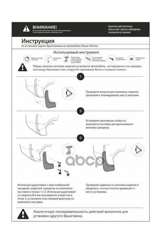 | Комплектация | 2 брызговика, крепеж, инструкция, упаковка |