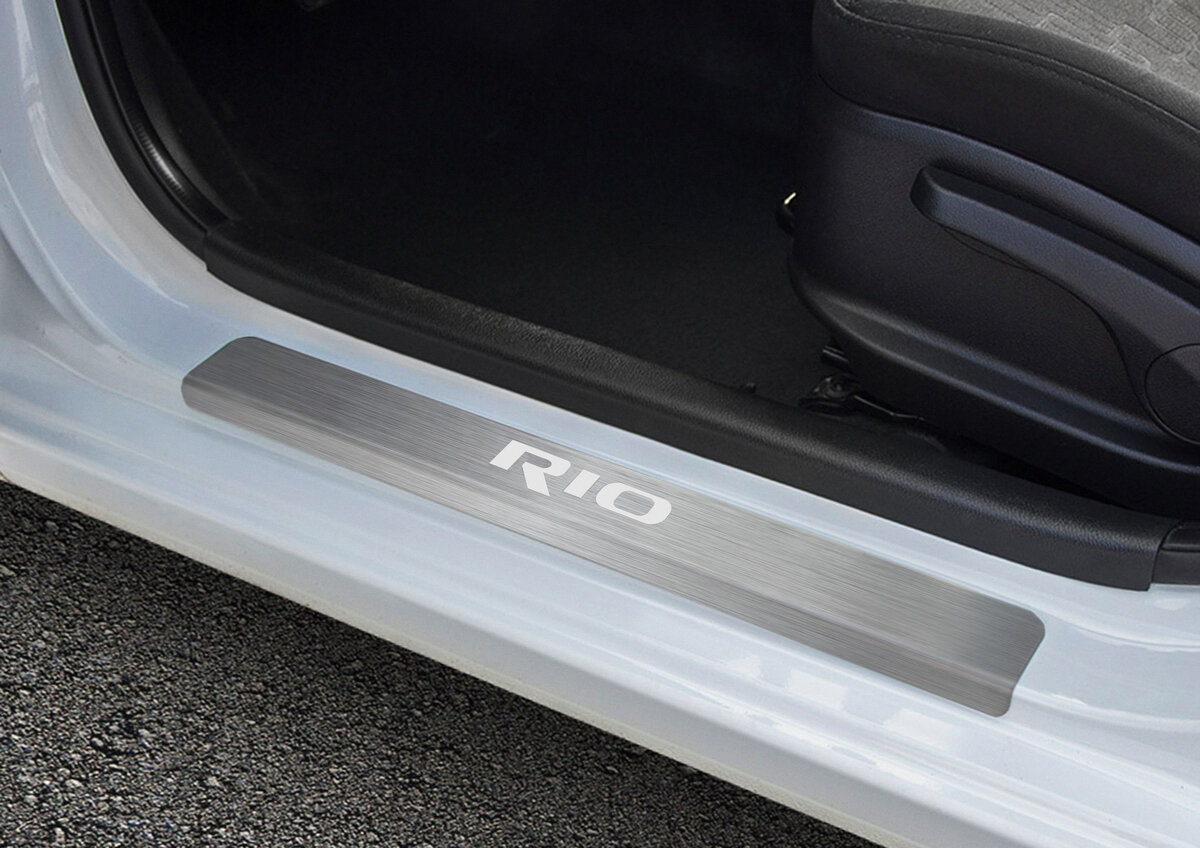 Накладки порогов Rival NP.2801.3 цвета серый металлик сделаны из нержавеющей стали AISI 304, отлично защищают лакокрасочное покрытие автомобиля от различных механических повреждений. Данные накладки на внутренние пороги «Риваль» разработаны специально для автомобилей Kia Rio с 2011- г.в. и полностью повторяют их геометрию. Легко и быстро устанавливаются