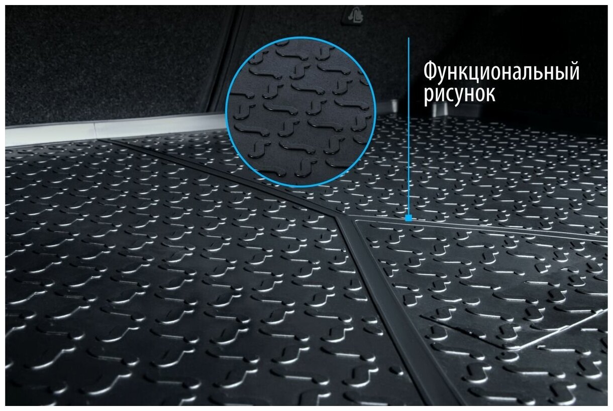 - Рисунок обеспечивает противоскользящую поверхность, благодаря которой перевозимые предметы не перекатываются в багажном отделении, а остаются на своих местах.