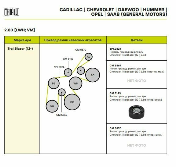 Сервис сравнения цен СкидкаГИД предлагает сравнить цены на товар «Ролик ремня приводов CHEVROLET TrailBlazer (05-) 2.8i (только ролик) (TRIALLI) (CM 5143)»