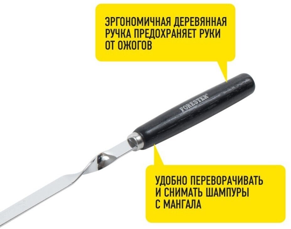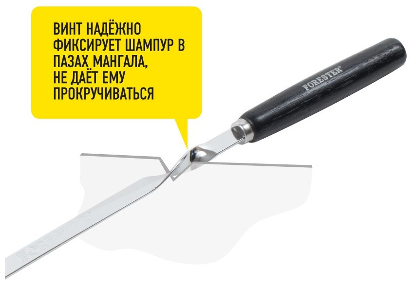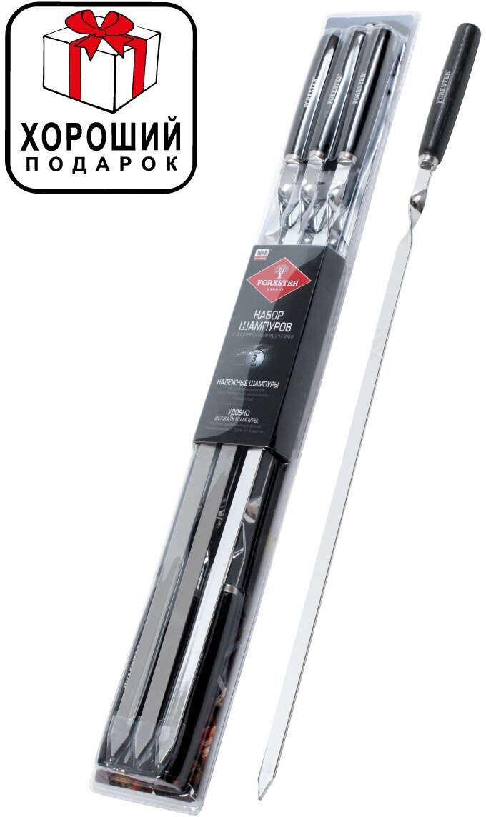 Зеркальная поверхность не позволяет продуктам прилипать к шампурам. А пищевая сталь со специальным покрытием защищает шампуры от коррозии и продлевает срок их службы. Шампуры Forester надежно фиксируются на мангале благодаря удобным ручкам-винтам. А блистер защищает при транспортировке остальной багаж от повреждений шампурами.