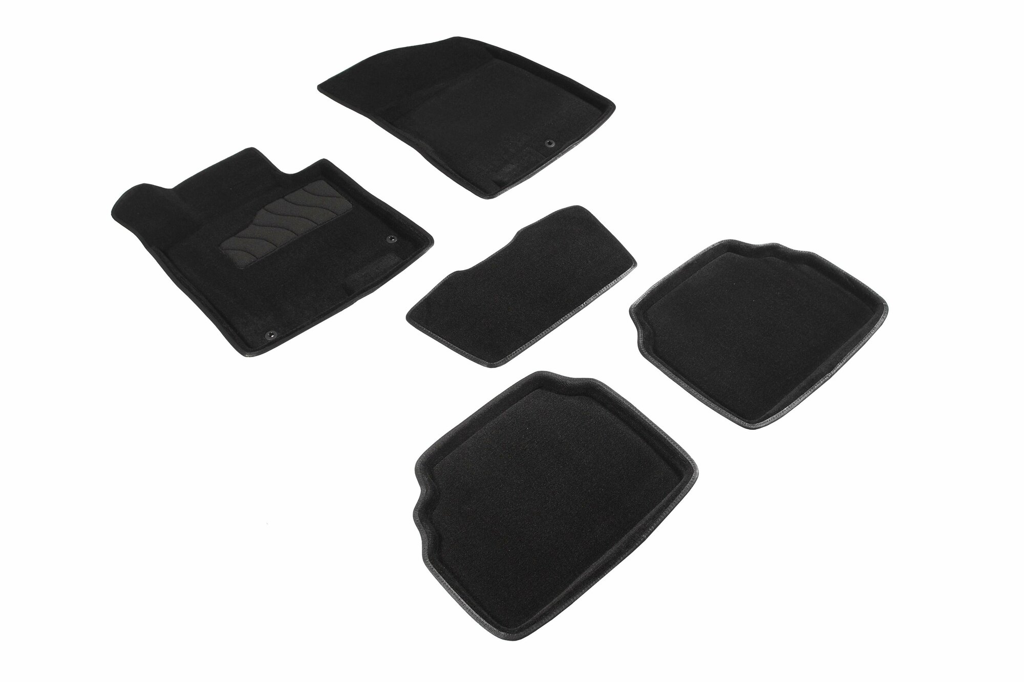 Красивый внешний вид, уникальное сочетание текстильного покрытия и объемного повторения пола салона. Коврики выполнены из трехслойного материала: вспененная основа покрыта ворсом снаружи и антискользящей пленкой с обратной стороны. Для увеличения срока службы, на водительском коврике под каблуком водителя имеется подпятник. Коврики хорошо моются.