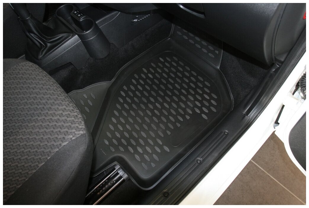 Коврики в салон DATSUN on-do, 01/2014-, 4 шт. . Коврики салона полиуретановые от бренда ELEMENT: Точно повторяет геометрию кузова (встанет идеально). 3D язычок полностью закрывает площадку отдыха ноги водителя. Включая боковую поверхность. Высокое качество материала (не пахнет). Наличие бортика по краю (пространство под ковриком останется чистым). Эластичный и мягкий (не задубеет на морозе). Оригинальный крепеж надежно фиксирует водительский коврик. Просто установить и легко очистить.