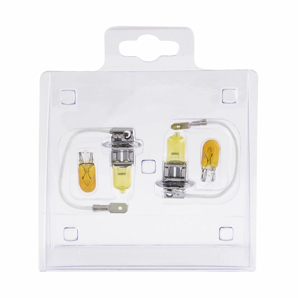 Галогенные лампы серии Yellow 3000K обладают ярким желтым свечением, значительно улучшая видимость на дороге при неблагоприятных условиях. Данная серия предназначена для фар головного света и обладает улучшенными техническими характеристиками и увеличенным сроком службы. В комплекте ламп есть дополнительными лампочками с цоколем W5W.