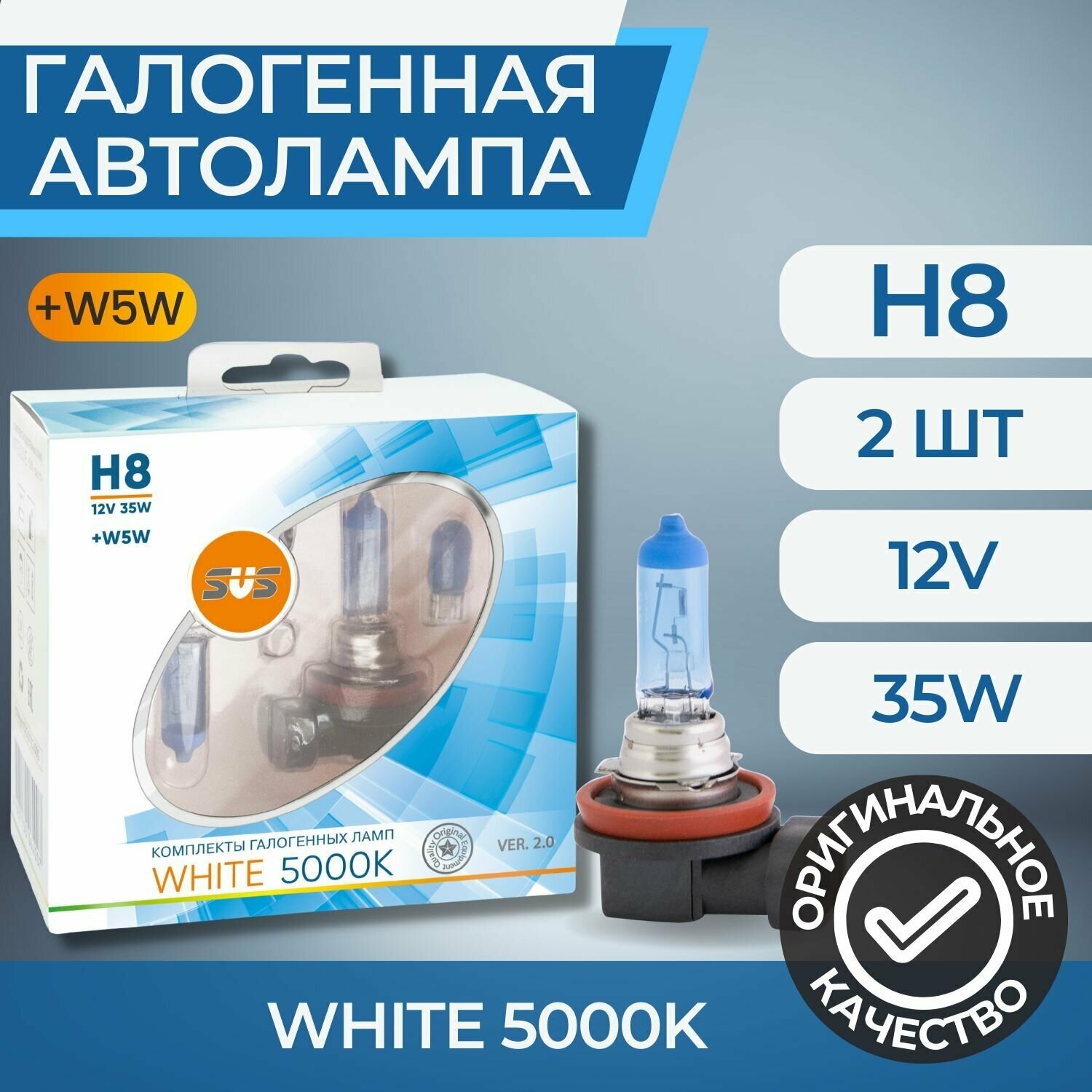 Галогенная лампа SVS White 5000K H8 12V 35W Ver.2.0 (2 шт) (0200109000)