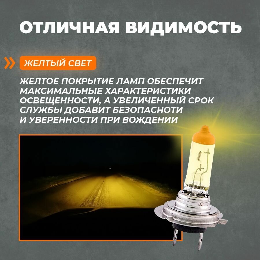Галогенные лампы серии Yellow 3000K обладают ярким желтым свечением, значительно улучшая видимость на дороге при неблагоприятных условиях. Данная серия предназначена для фар головного света и обладает улучшенными техническими характеристиками и увеличенным сроком службы. В комплекте ламп есть дополнительными лампочками с цоколем W5W.