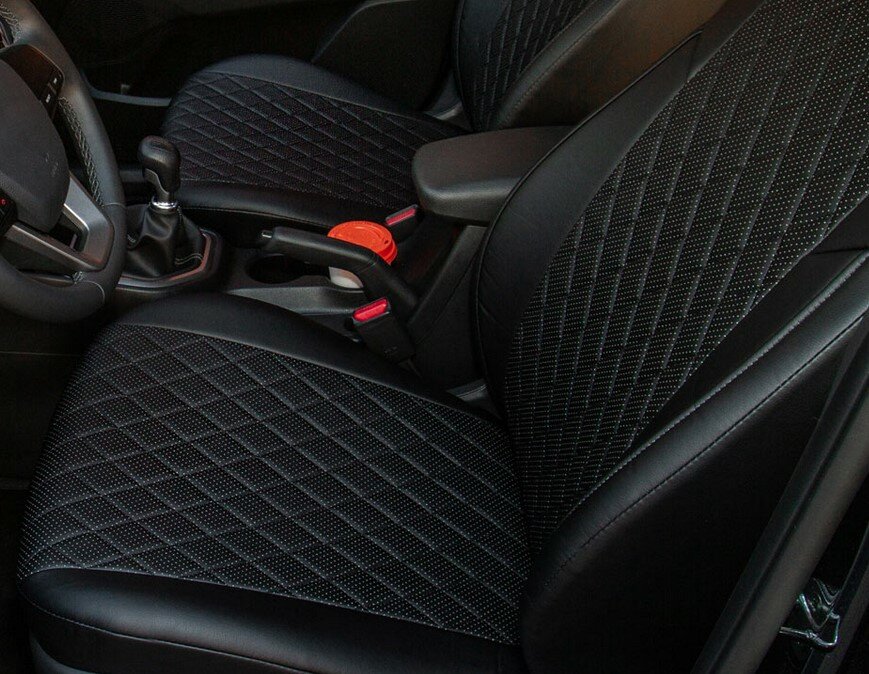 • Практичность. Экокожа, которую используют для производства автомобильных чехлов, ничем не уступает настоящей коже как по внешним, так и по физическим характеристикам. Материал очень прочный: не рвется, выдерживает механические нагрузки и перепады температур.