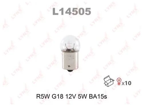 Лампа накаливания LYNXauto 12V R5W BA15S белая (L14505)