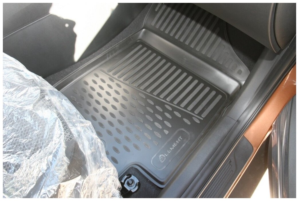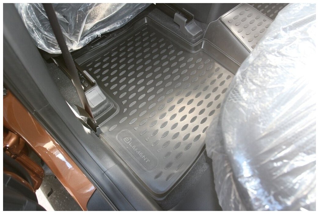 В поисках совершенной защиты пола автомобиля талантливые дизайнеры и инженеры создали уникальные ковры под брендом ELEMENT. Функциональность: идеально повторяют геометрию пола автомобиля; высокие борта обеспечивают надежную защиту интерьера от грязи и влаги; запатентованный 3D-язычок закрывает площадку отдыха ноги водителя, включая боковую поверхность; благодаря эластичности материала, ковры легко извлечь из автомобиля, не допуская попадания влаги и мелкого мусора на напольное покрытие салона. Безопасность: оригинальный крепеж надежно фиксирует водительский ковер в салоне, препятствуя попаданию ковра под педали управления. Ковры ELEMENT изготовлены с применением экологически чистых материалов, которые не оказывают негативного воздействия на человека. Дизайн: ковры имеют оригинальный объемный рисунок, который подчеркивает их индивидуальность, являясь продолжением дизайна автомобиля. Представлены в трех цветах: черном, сером и бежевом. Материал: полиуретан.