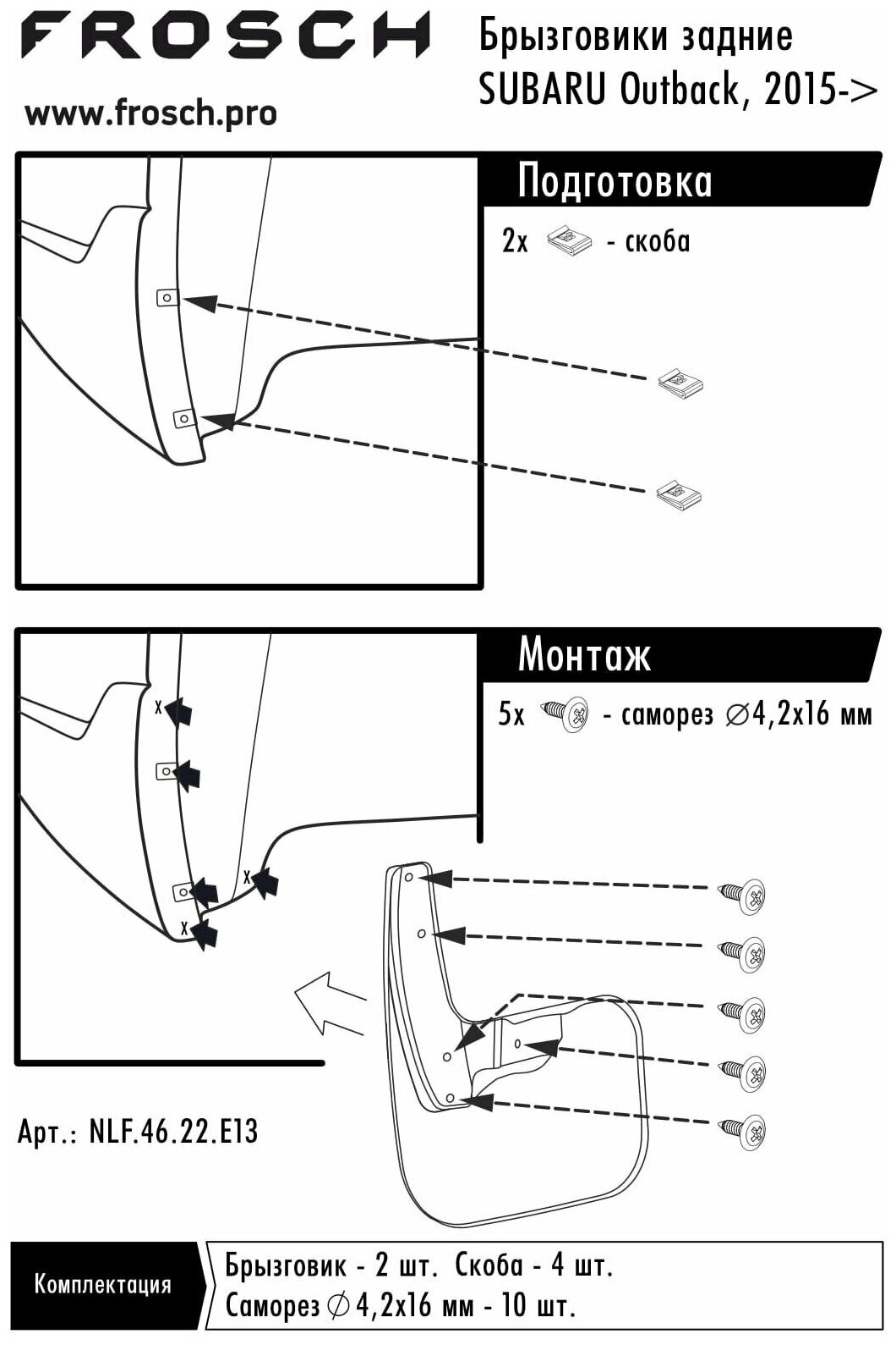 Сервис сравнения цен СкидкаГИД предлагает сравнить цены на товар «Брызговики задние SUBARU Outback 2015 полиуретановые в пакете 2шт Frosch NLF.46.22.E13»