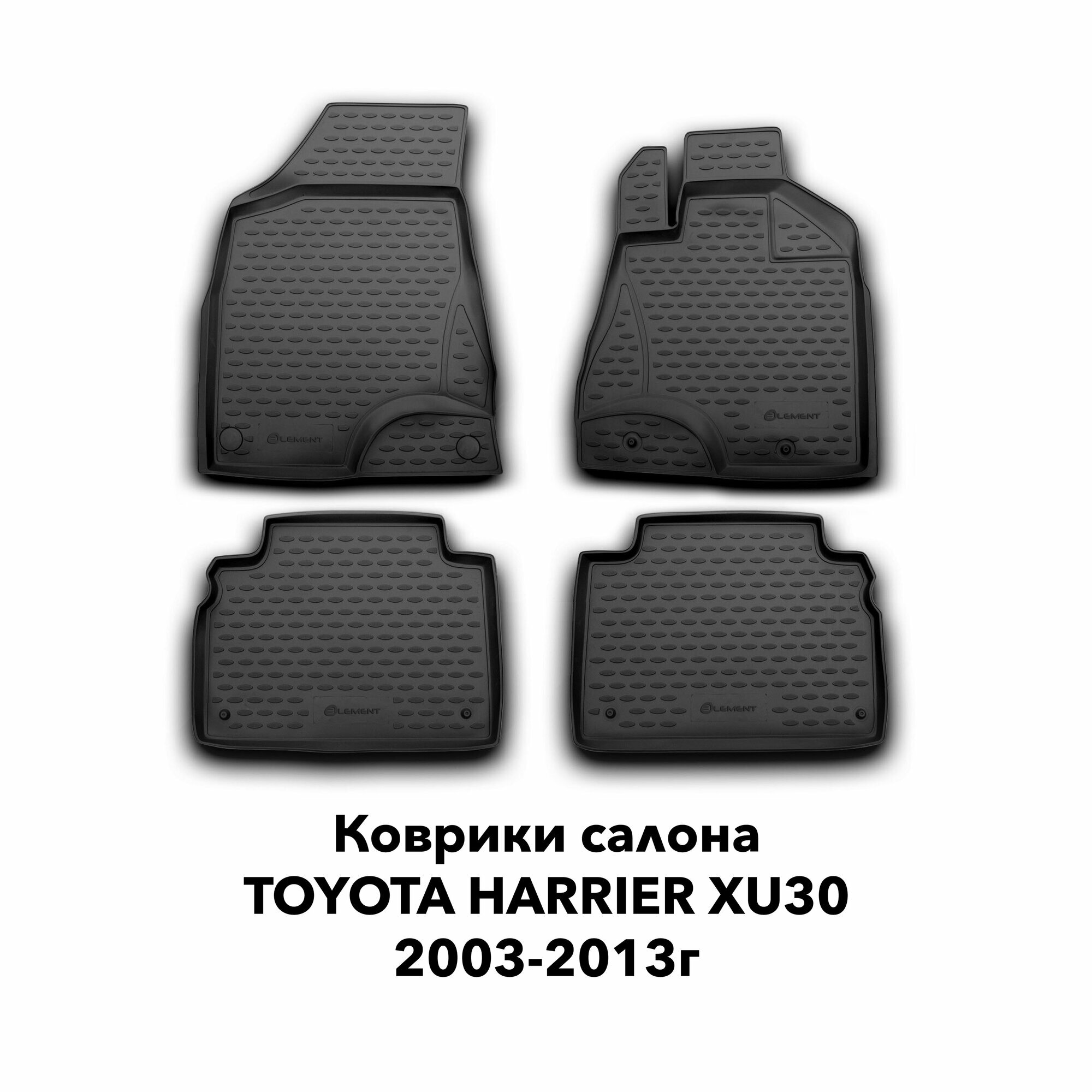 Коврики в салон TOYOTA Harrier, 2003-2008прав.руль,4 шт. . Коврики салона полиуретановые от бренда ELEMENT: Точно повторяет геометрию кузова (встанет идеально). Высокое качество материала (не пахнет). Наличие бортика по краю (пространство под ковриком останется чистым). Эластичный и мягкий (не задубеет на морозе). Оригинальный крепеж надежно фиксирует водительский коврик. Просто установить и легко очистить.