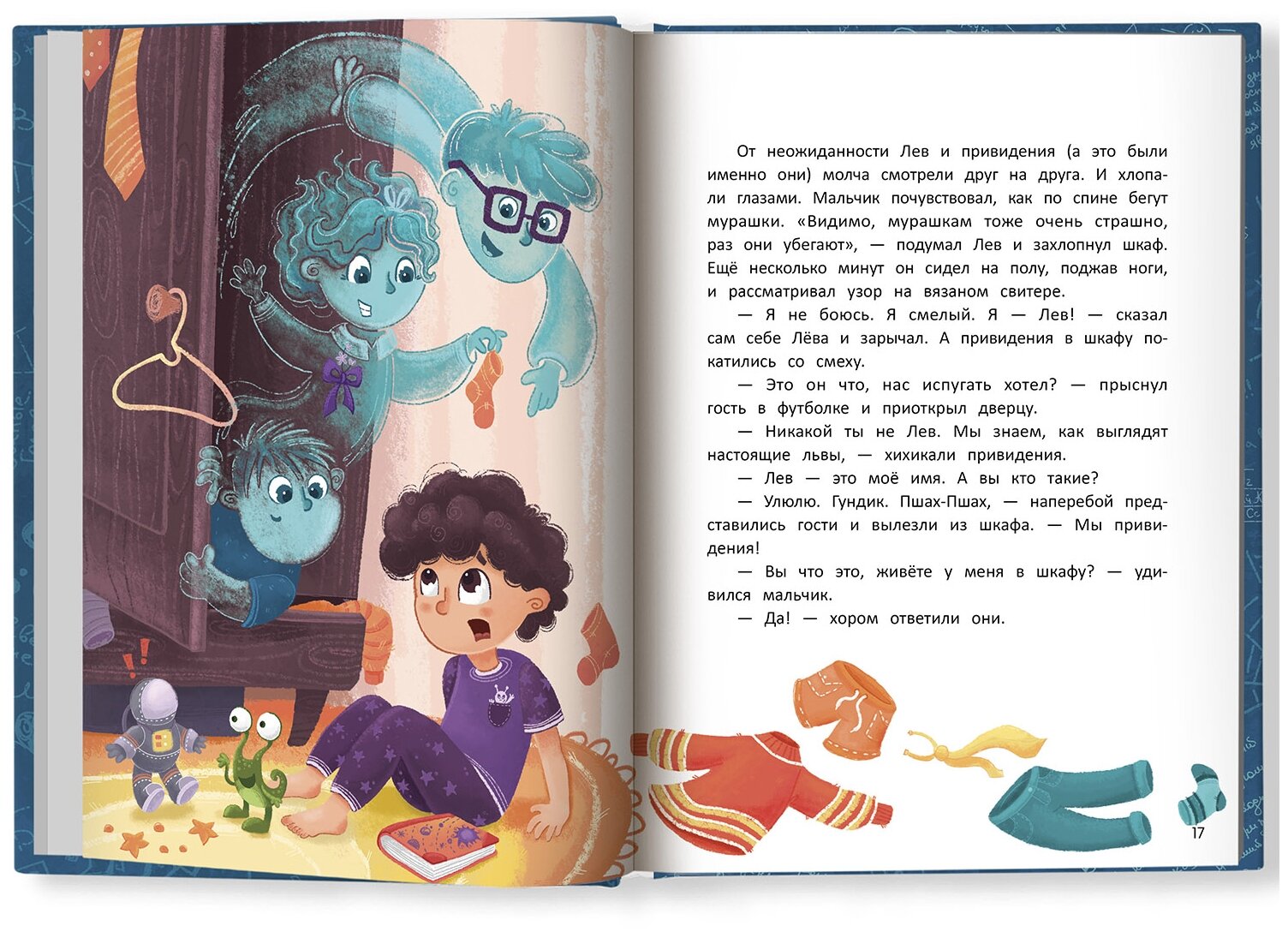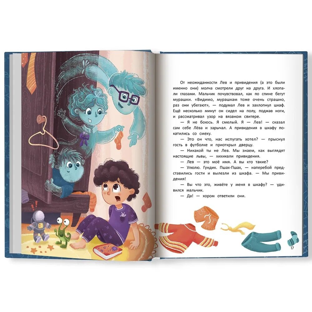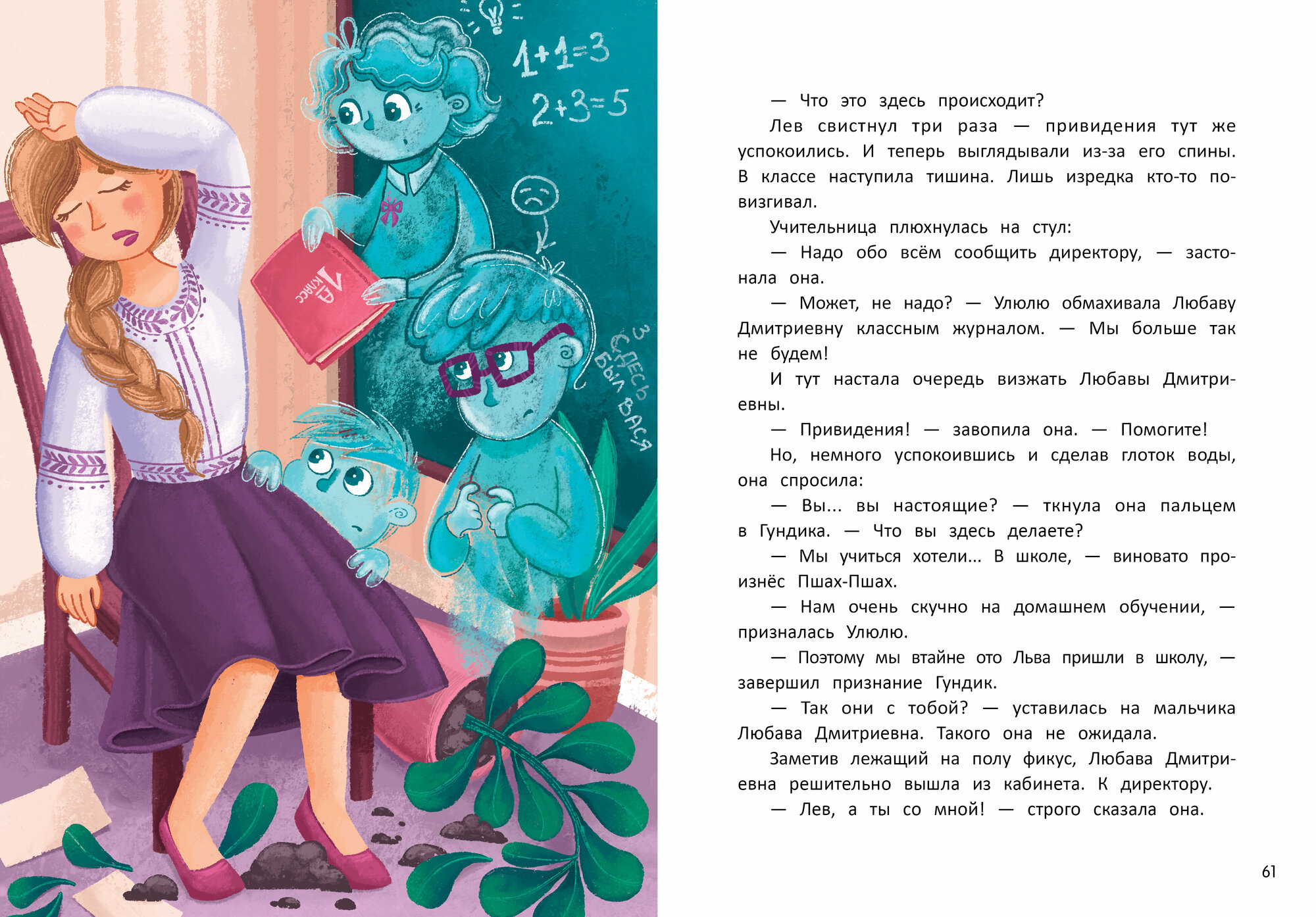 В современном мире образованными должны быть даже привидения. Именно поэтому на семейном совете Ластиквиллей было решено, что тройняшки Пшах-пшах, Улюлю и Гундик, которым, кстати, вот-вот исполнится семь лет, должны отправиться в школу. Или хотя бы научиться читать. Для этого их нужно поместить в благоприятную среду. Такой средой оказался шкаф в комнате будущего первоклассника Льва Редькина. Он-то и привил любовь к чтению непоседливым привидениям. Но любопытная троица решила не останавливаться на домашнем обучении. И без разрешения отправилась в настоящую школу.