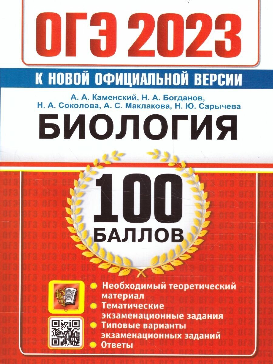 ОГЭ 2023 Биология 100 баллов Самостоятельная подготовка к ОГЭ (Богданов Николай Александрович (соавтор), Соколова Наталия Александровна (соавтор), Каменский Андрей Александрович); Экзамен, 2023