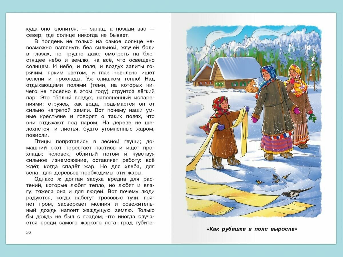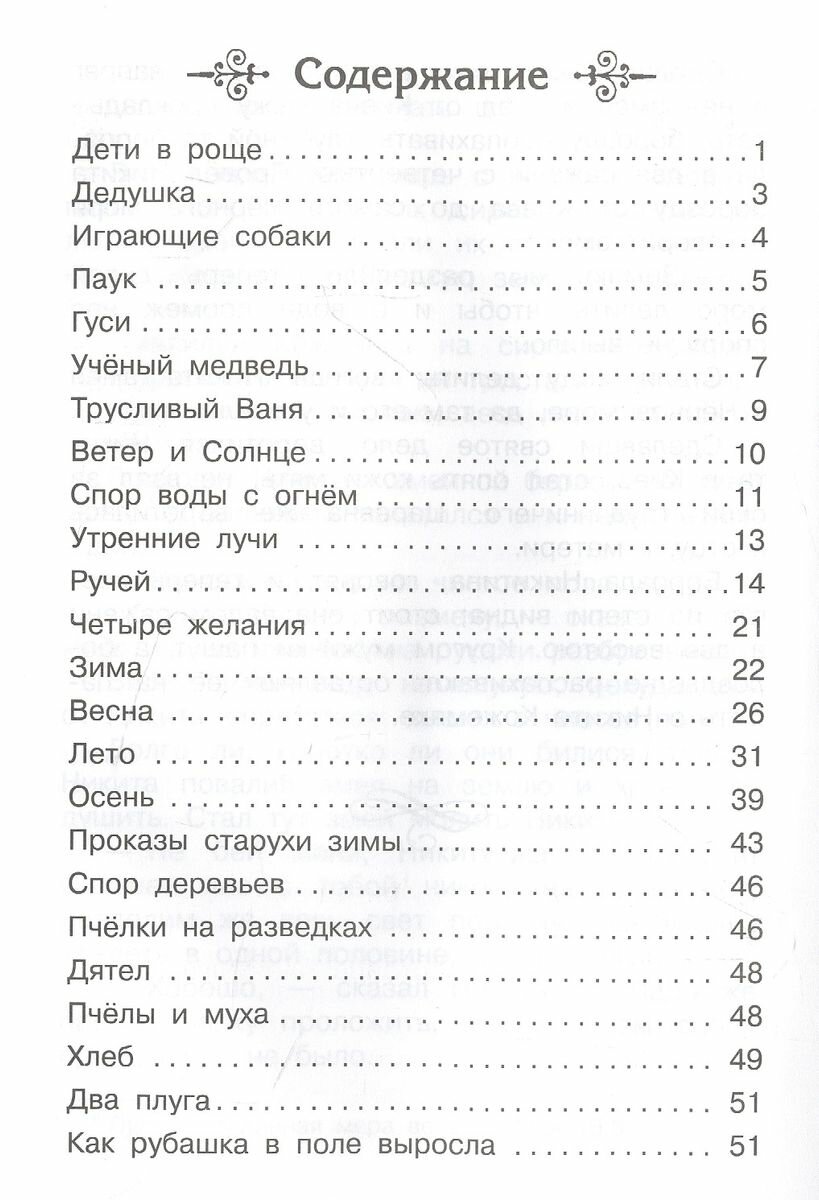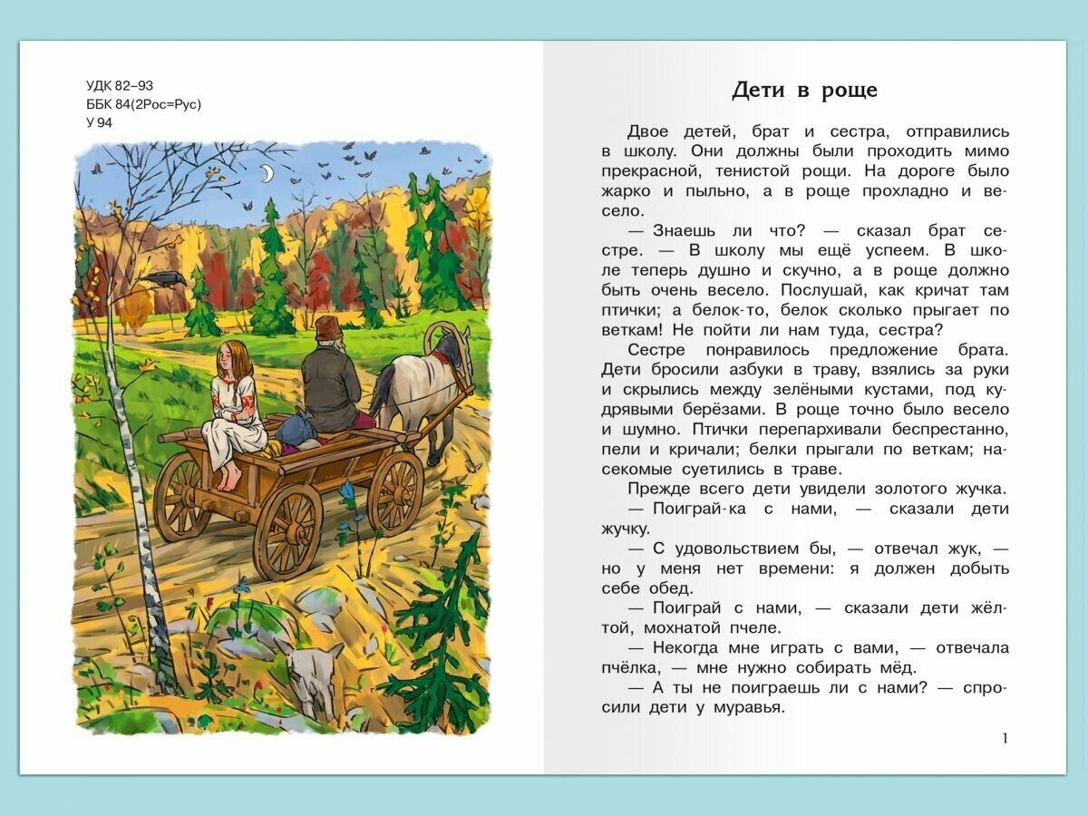 В сборник К. Д. Ушинского вошли известные сказки и рассказы, среди которых – "Дети в роще", "Учёный медведь", "Спор воды с огнём", "Четыре желания", "Проказы старухи зимы", "Пчёлки на разведках", "Как рубашка в поле выросла", "Как аукнется, так и откликнется", "Не плюй в колодец – пригодится воды напиться", "Братец Иванушка и сестрица Алёнушка", "Сивка-бурка", "Никита Кожемяка" и другие. Каждая история удивительным образом и по-своему рассказывает о красоте и мудрости окружающей нас природы. Произведения сборника включены в школьную программу по литературному чтению и адресованы ребятам младшего школьного возраста. Тексты произведений представлены без сокращений, напечатаны на хорошей бумаге крупным Ё-шрифтом и содержат красочные иллюстрации И. Ольховатова. Средний формат и небольшой вес издания делают его удобным для домашней или школьной библиотеки и необременительным грузом в рюкзаке школьника. Книги серии "Школьная библиотека" – идеальный подарок юным читателям. Дарите лучшее!