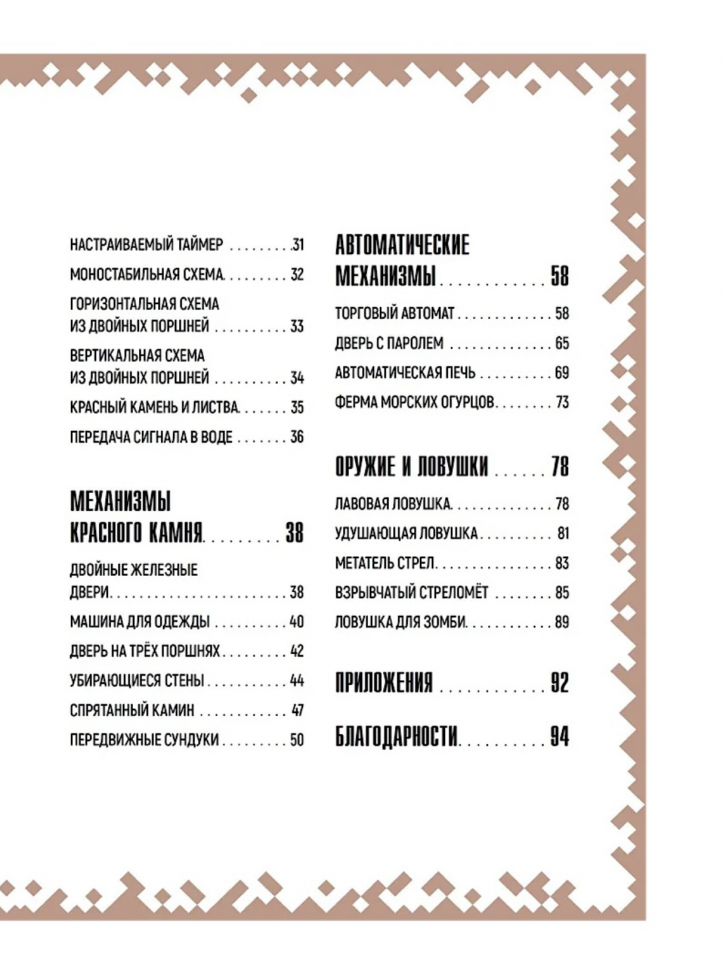 Очень интересная книга. С помощью неё я теперь могу возводить собственные механизмы. Я разобрался с красной пыль вдоль и поперёк. Если вот я раньше не мог банально красной пылью открыть дверь, то сейчас какаю нибудь афк машина будет для меня лёгкой постройкой. Если же вы купите эту книгу, то не будете разочарованы в потраченных деньгах. Также я хочу пометить, что эти советы подойдут не только начинающим игрокам, но и опытным в этой сфере.