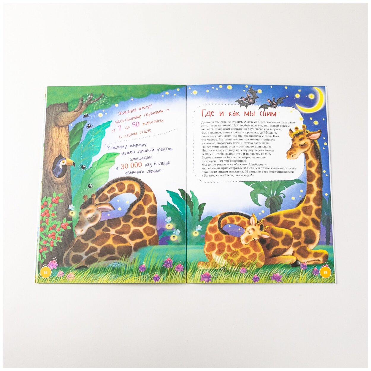 Что ты можешь рассказать о жирафе, кроме того, что он живёт в далёкой Африке, у него пятнышки на шубке и очень длинная шея? А ещё? Жираф из нашей книжки готов поведать тебе о себе всё, ну или почти всё. Ты узнаешь, как жирафы спят, что они больше всего любят, умеют ли разговаривать, как определить возраст жирафа по цвету пятнышек и зачем им длинные языки. Все тайны жизни жирафов — только для тебя!