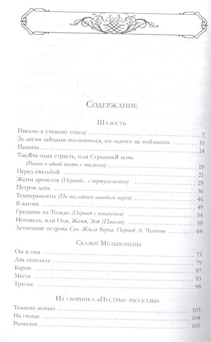 Книга великолепна!!! Я очень люблю творчество Чехова, и на данный момент собраны почти все его произведения, и здесь не смогла отказать себе в покупке юмористических произведений. Особенно по вечерам люблю окунуться в чеховскую атмосферу...Завораживает, удивляет, поднимает настроение. Кстати, достаточно много рассказов которые не встречаются в других сборниках. Да, шрифт мелковат, но кому то даже нравится.
