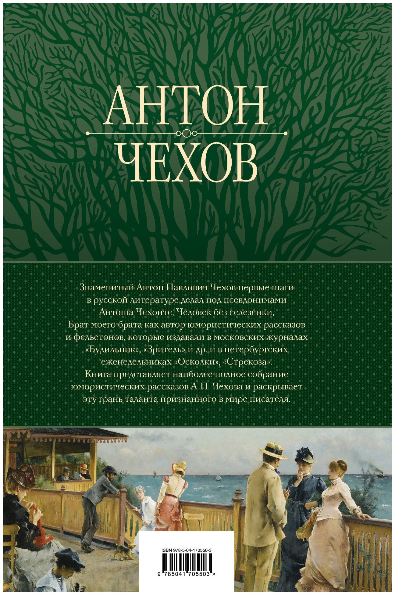 Знаменитый Антон Павлович Чехов(1860 - 1904) первые шаги в русской литературе делал под псевдонимами Антоша Чехонте, "Человек без селезенки", Брат моего брата, как автор юмористических рассказов и фельетонов, которые издавали в юмористических московских журналах "Будильник", "Зритель" и др. и в петербургских еженедельниках "Осколки", "Стрекоза", а впоследствии вошли в первые книги начинающего автора. Именно первые сборники и книги А. Чехова - "Шалость", "Сказки Мельпомены", "Пестрые рассказы", а также рассказы, печатавшиеся в журналах "Осколки", "Зеркало" и др. - включены в эту книгу, раскрывающую юмористический талант признанного в мире писателя. Книга представляет наиболее полное собрание юмористических рассказов А.П. Чехова.