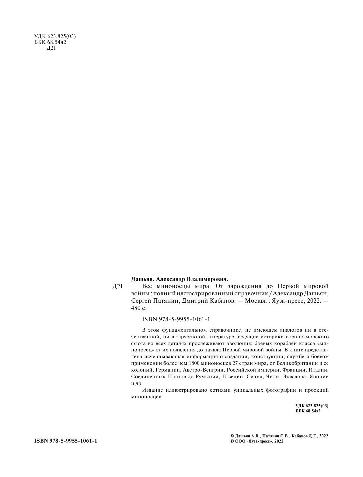 Все миноносцы мира: От зарождения до Первой мировой войны. Полный иллюстрированный справочник (Патянин Сергей Владимирович, Дашьян Александр Владимирович, Кабанов Сергей Александрович); Издательство Яуза ООО, 2022