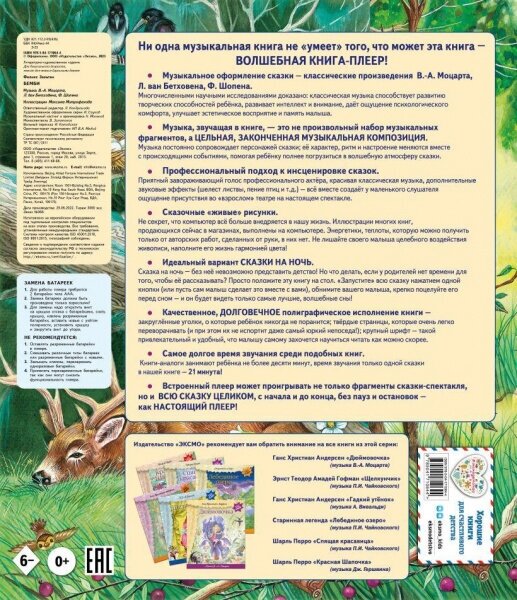 «Волшебная книга-плеер» от «Эксмодетство» — это любимая сказка с музыкальным модулем. Профессиональная озвучка всей сказки совместно с самыми известными произведениями таких композиторов, как П.И. Чайковский, В.-А. Моцарт, А. Вивальди, окутают ребёнка волшебной атмосферой.