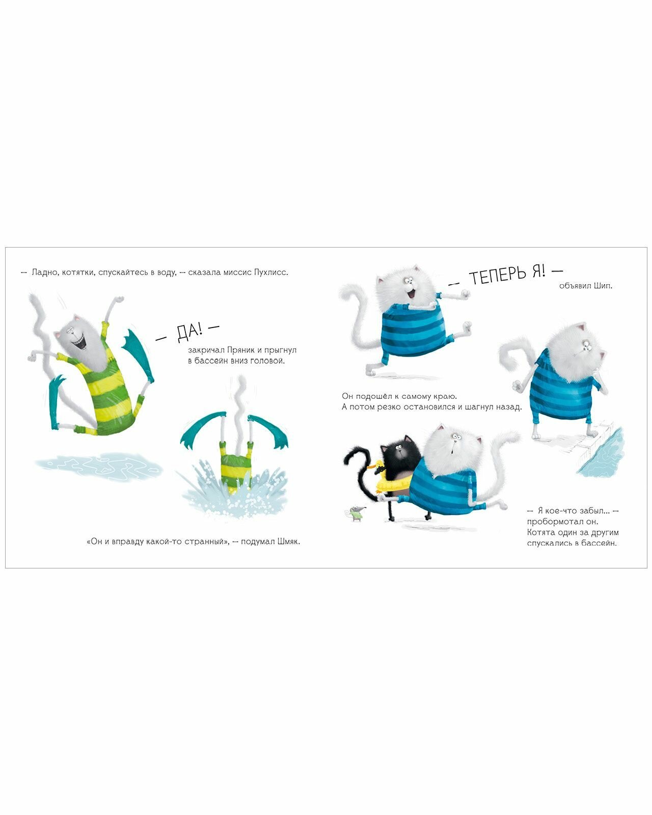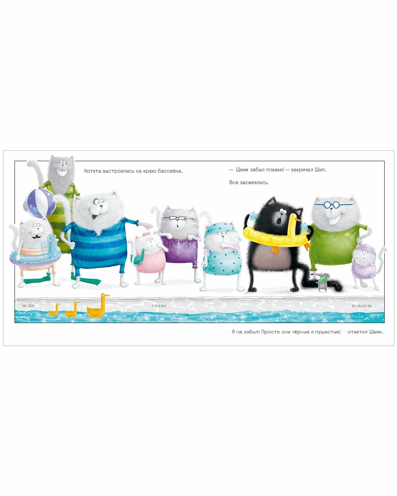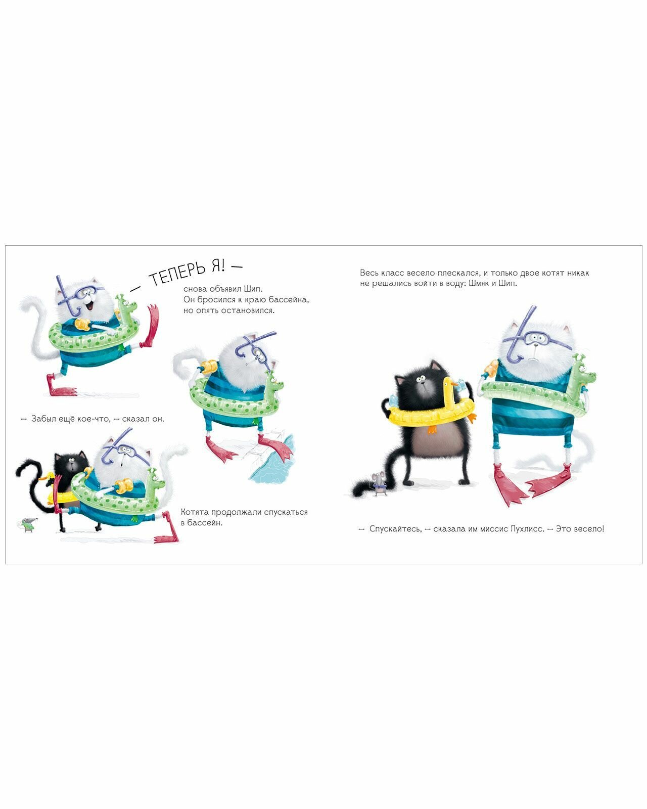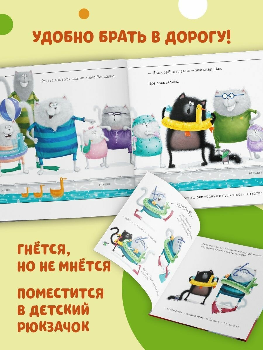 В этой книге Шмяк вместе с классом отправляется в бассейн. Но Шмяк вовсе не хочет учиться плавать: вода противная, мокрая, и он от неё НАМОКАЕТ! Оказывается, его приятель Шип думает точно так же. Как же котятам решиться сделать первый шаг и войти в воду?