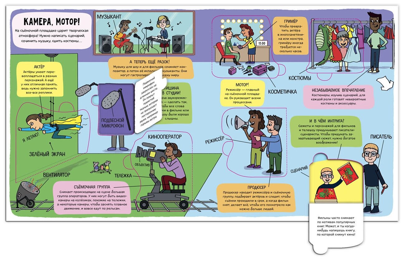 Кто придумывает, строит и украшает дома? Кто работает под открытым небом в любую погоду? Сколько народу трудится над фильмами и сериалами? Удивительные открытия ждут на каждой странице!
