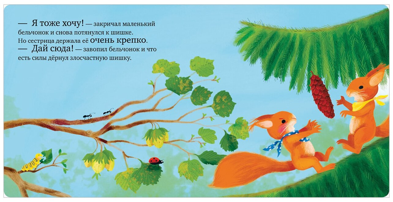 Маленький бельчонок не на шутку рассердился. Еще бы! Его сестра нашла большую еловую шишку, но не хочет делиться! О нет! Шишка упала и раскололась на кусочки! Сможет ли бельчонок загладить свою вину и перестать сердиться?