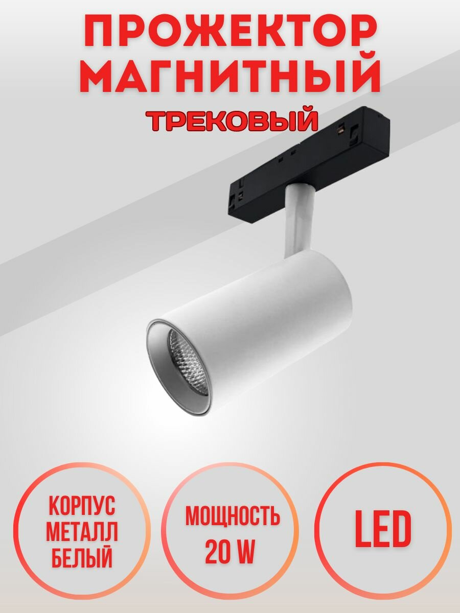 Трековый светодиодный светильник Elvan PJ-2012-20W-WW-WTH 2012
