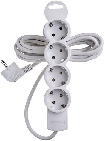 Бытовой удлинитель 4 гнезда, без выключателя, с заземлением, 5м REV QUICK FIX служит для использования исключительно в помещениях, например: в квартире, в загородном доме, в офисе и т. п. Устройство подходит для подключения одновременно нескольких электроприборов, таких как: инструменты, бытовая и компьютерная техника. Специальное крепление QUICK FIX позволяет быстро закрепить удлинитель на стене или любой другой плоской поверхности с помощью двустороннего скотча или саморезов.