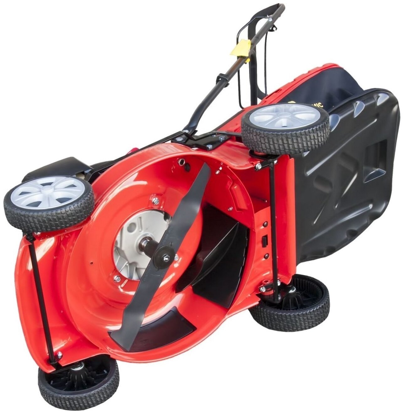 | Прочие особенности и свойства | Стальной корпус толщиной 1,8 мм Выброс в сторону Штуцер для мойки корпуса Широкие колеса не оставляющие колею на газоне |