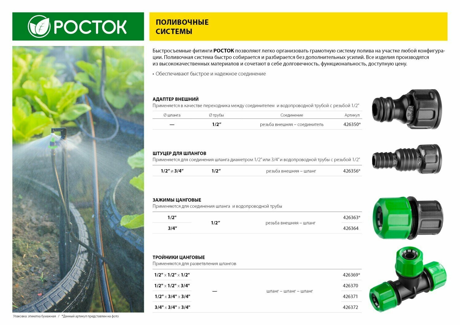 Аксессуары РОСТОК для поливочных систем надёжны и долговечны, изготовлены из ударопрочного пластика. Обеспечивают быстрое и простое соединение элементов.