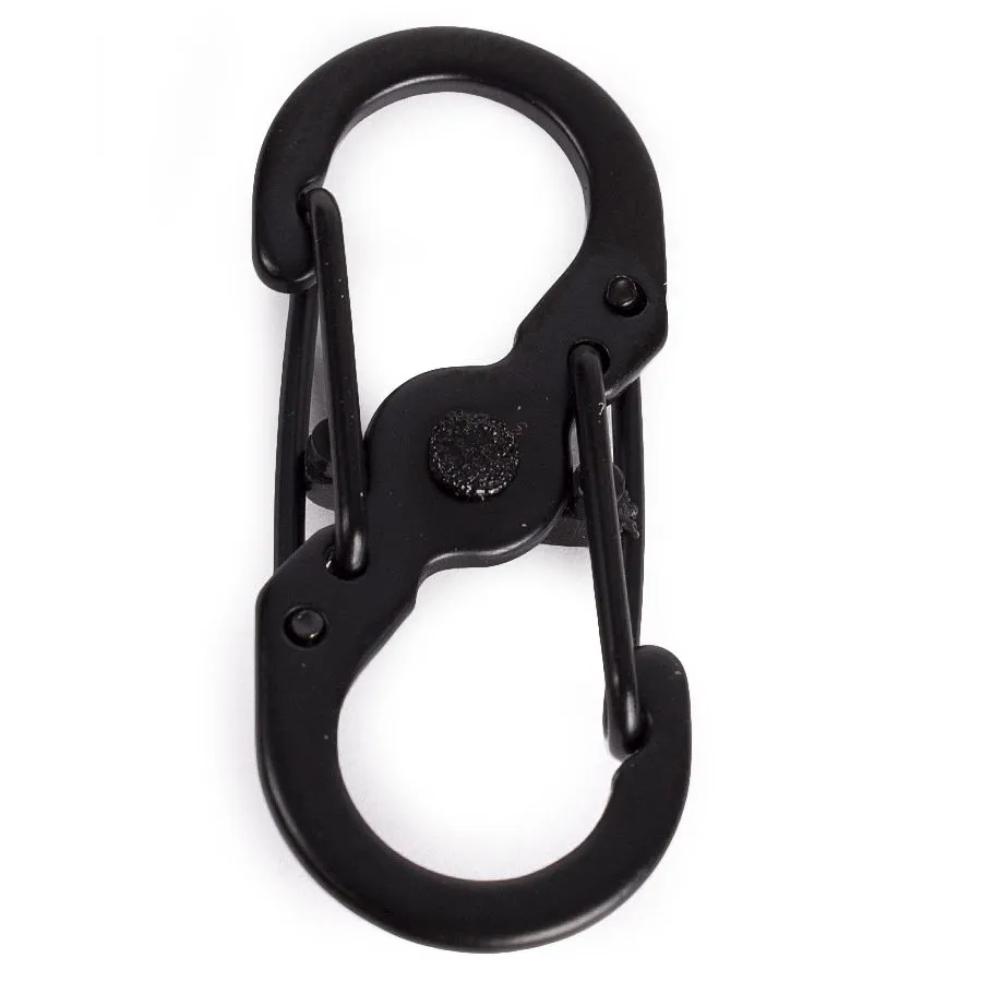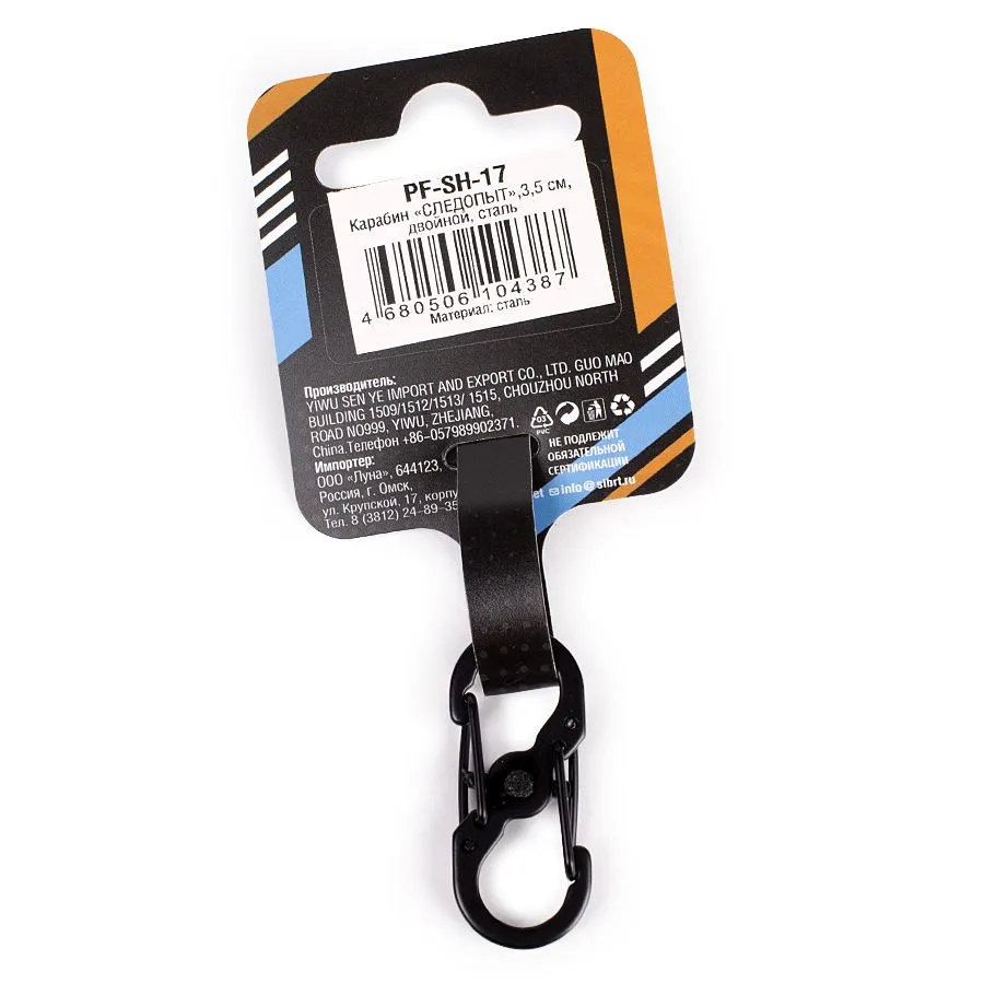 Карабин двойной. Карабин — универсальное устройство для крепления и фиксации туристического снаряжения, сфера применения обширна - от запланированного использования в качестве подвеса, так и для быстрой замены в полевых условиях сломавшегося фастекса на рюкзаке.